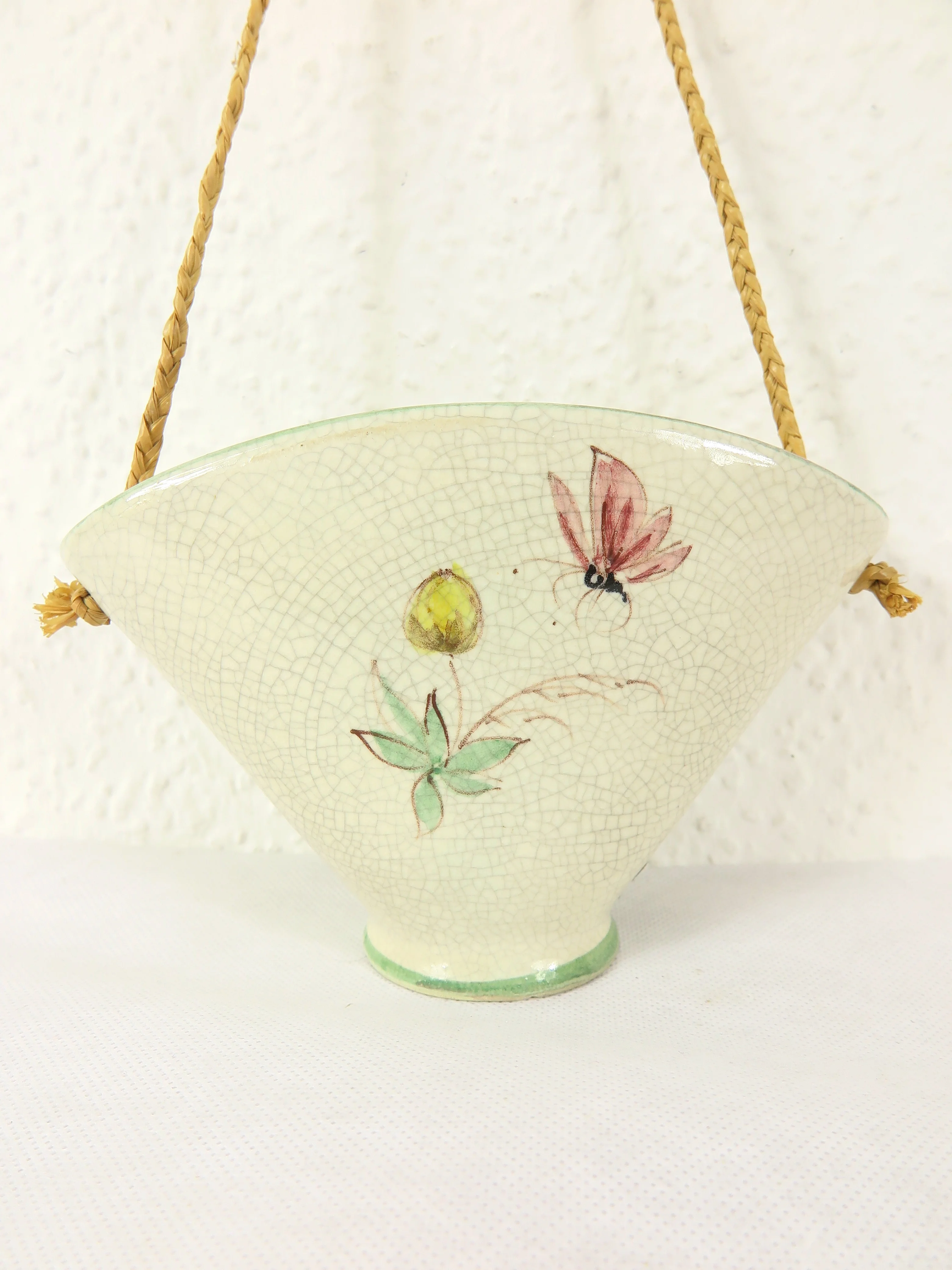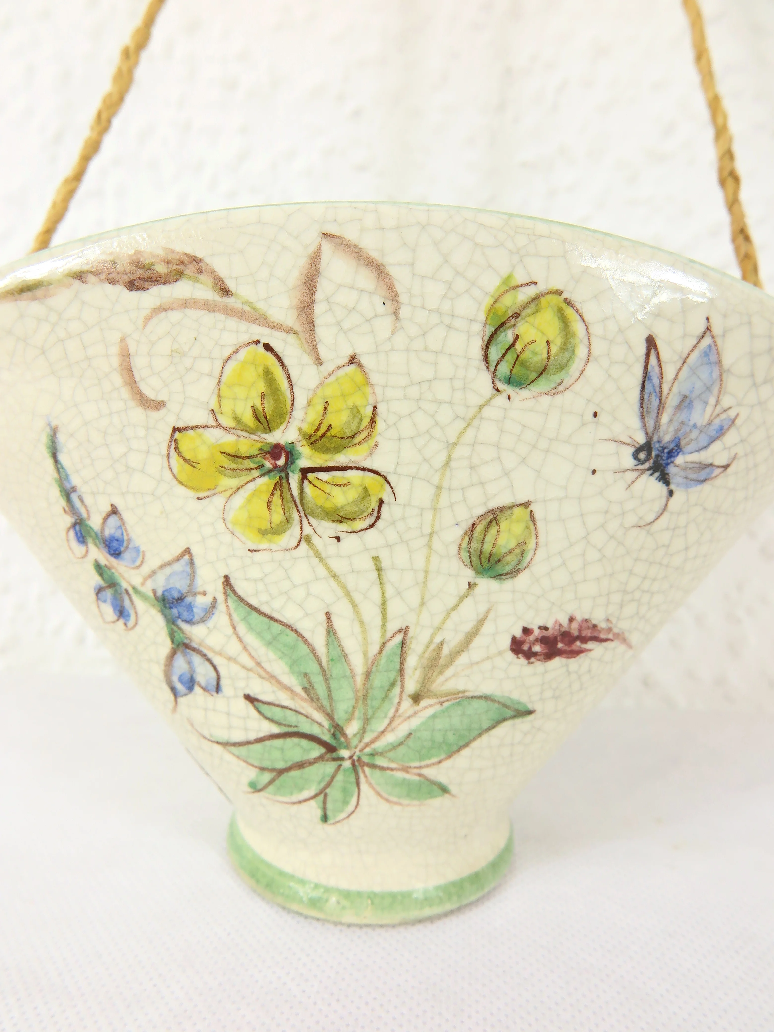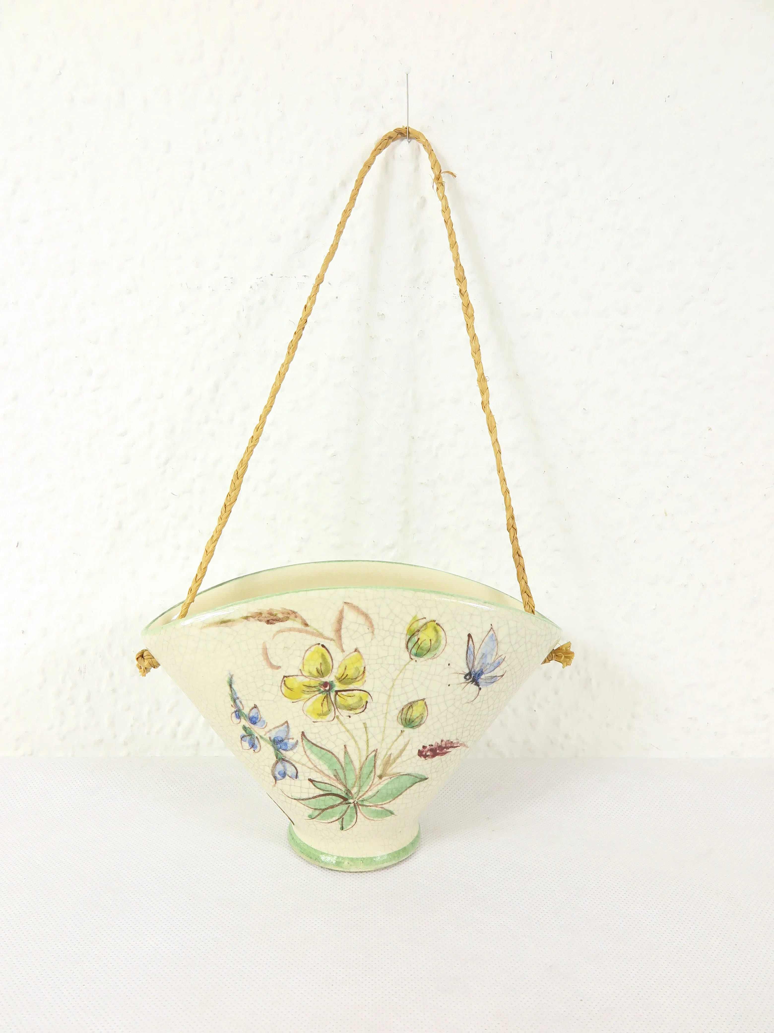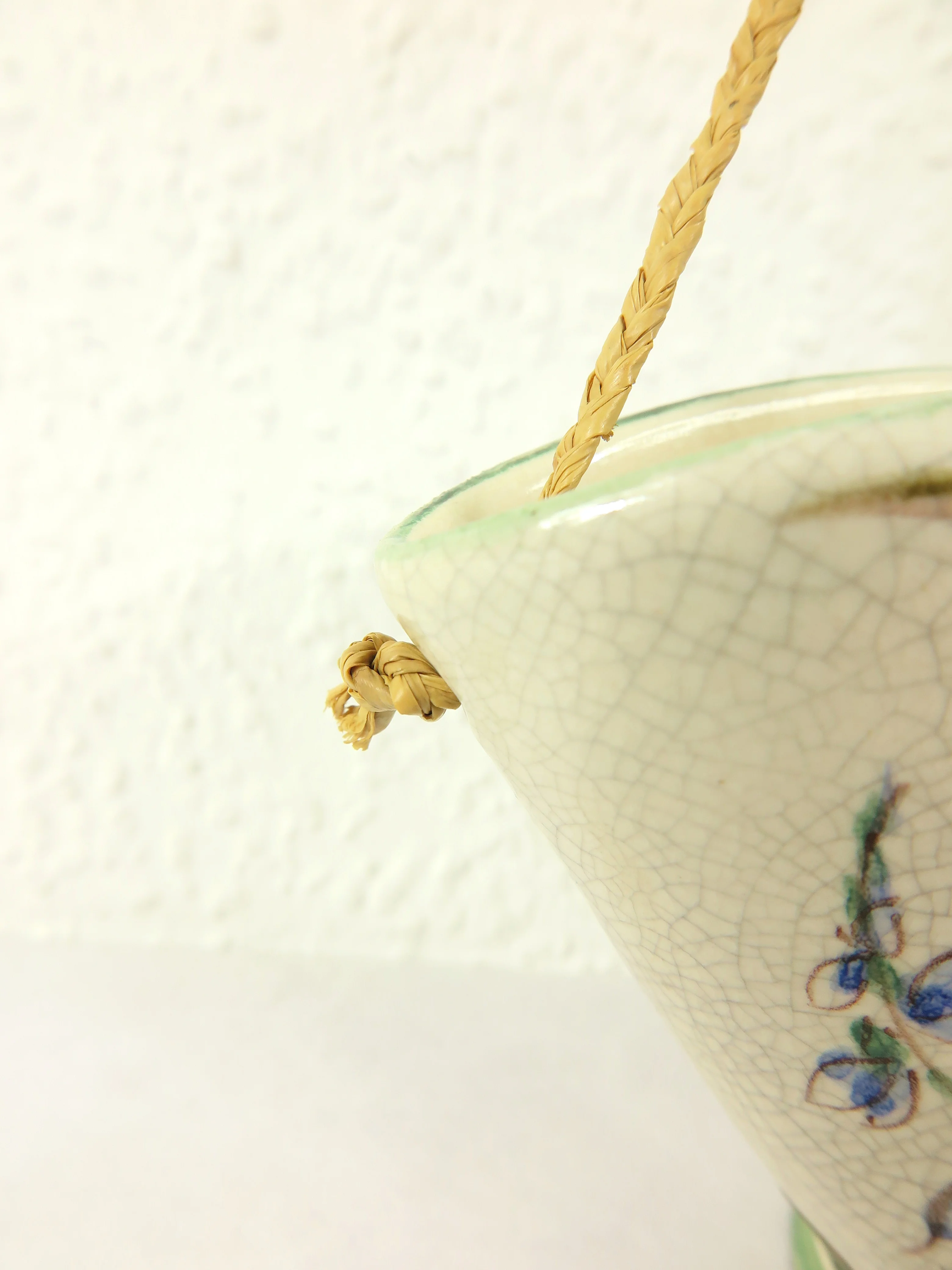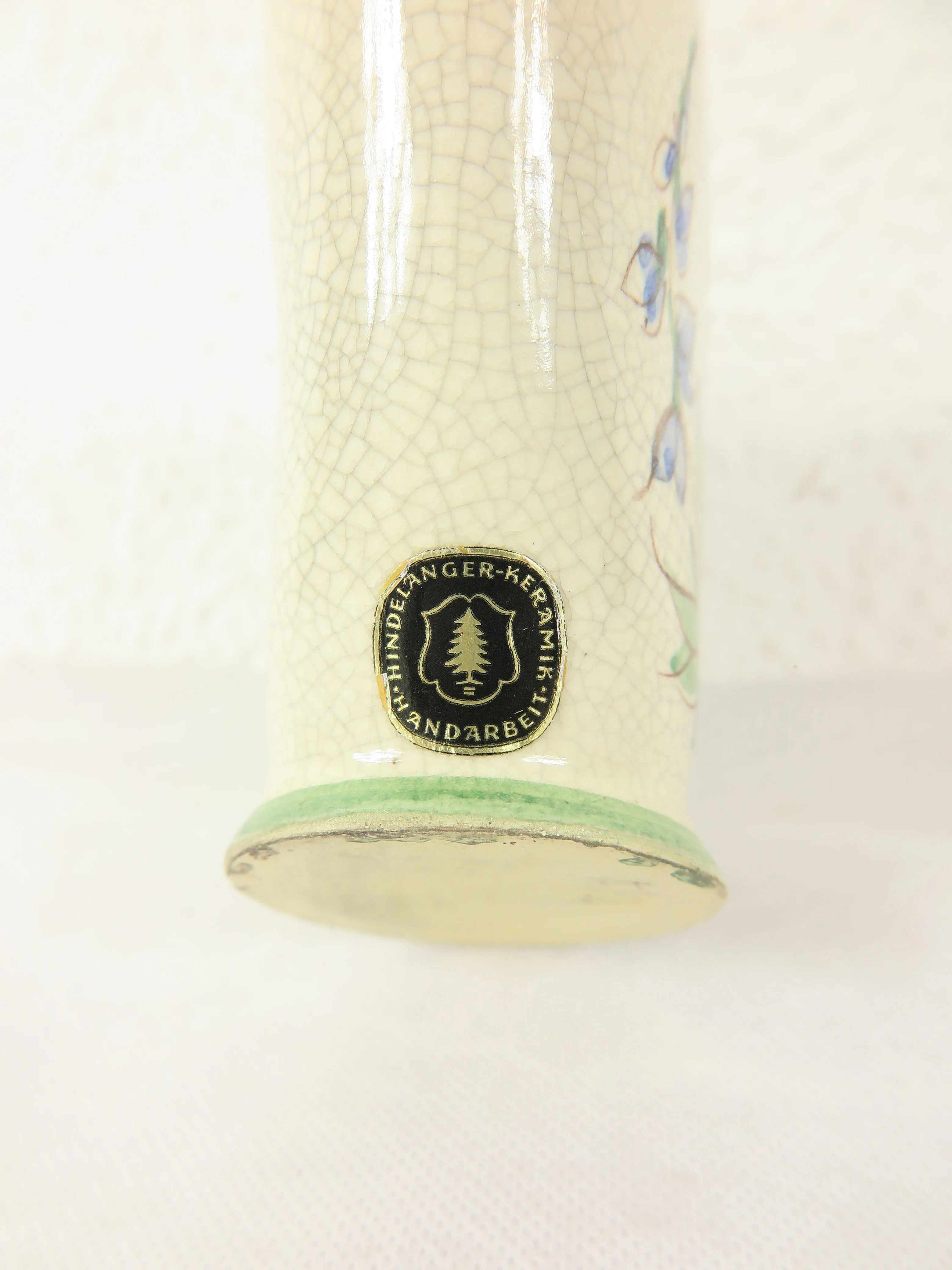 Es handelt sich um eine echte Handarbeit der Manufaktur Hindelanger Keramik. Besonders schön sind die handgezeichneten Blumen und die Eierschalenglasur im Hintergrund.