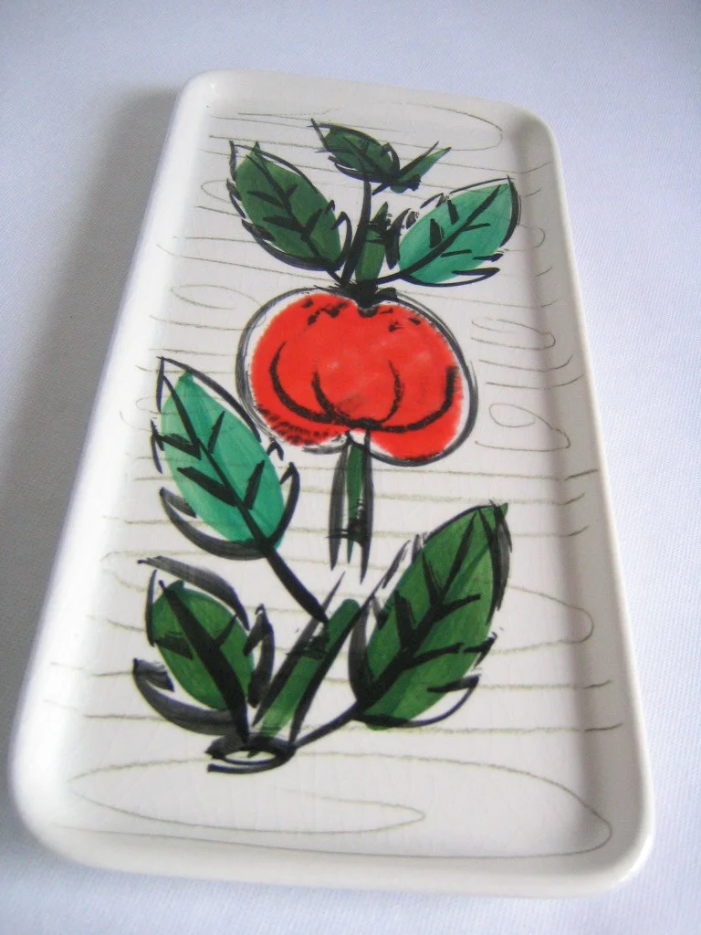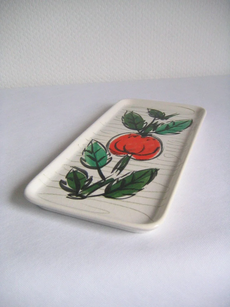 Handbemalte original 60er Jahre Aufschnittplatte im Apfeldesign.