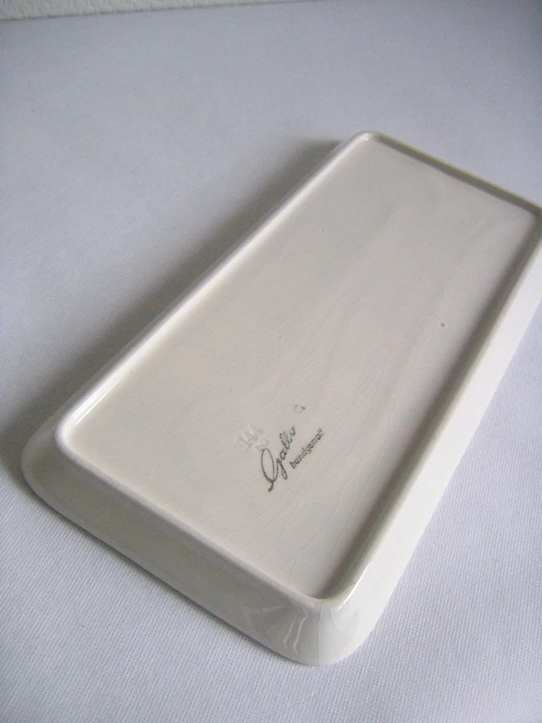 Die durchsichtige Glasur ist im Krakeleedesign und gibt der Platte das gewisse Extra.