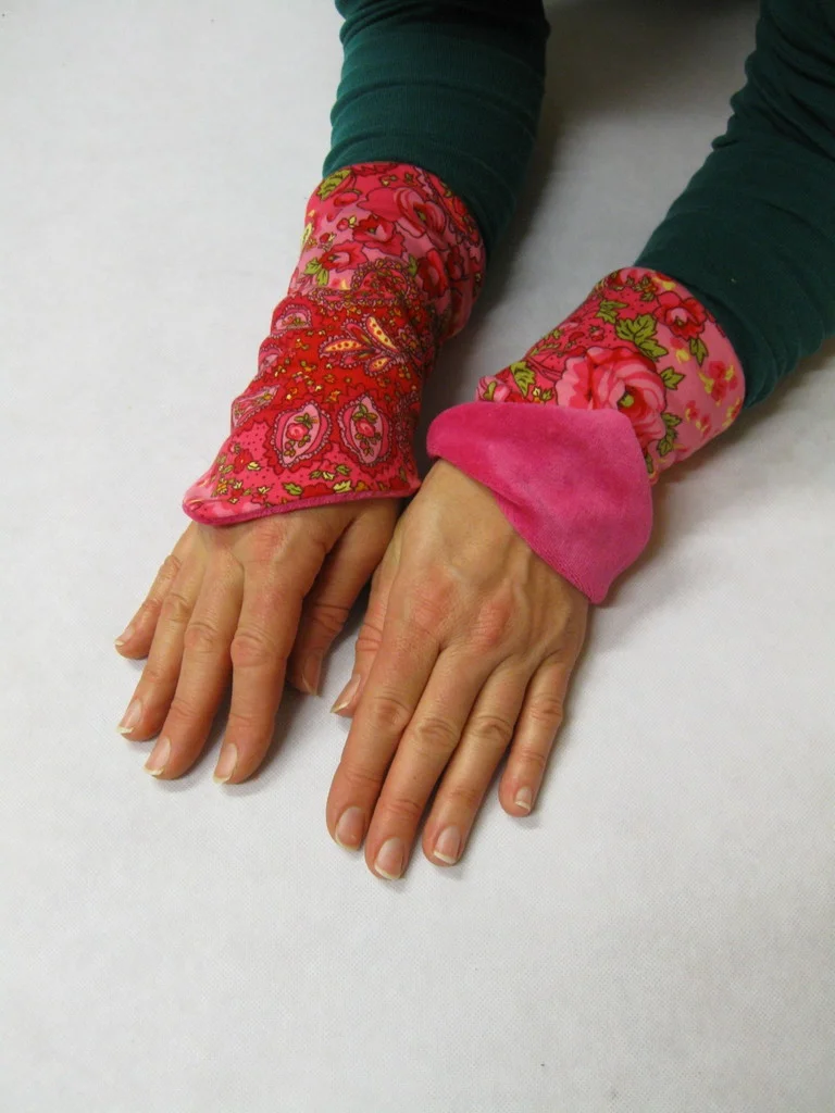 Die Stulpen sind aus Baumwolle, warmen Fleecestofff und können auch gewendet getragen werden.