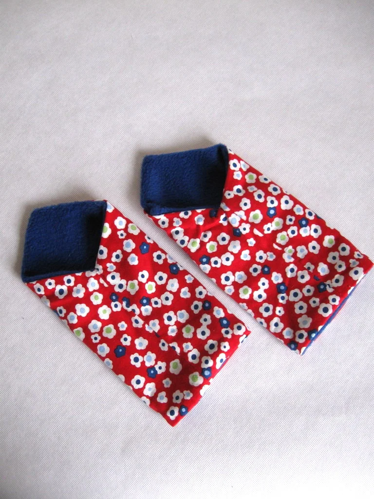 Die Stulpen sind aus Baumwolle, warmen Fleecestofff und können auch gewendet getragen werden.
