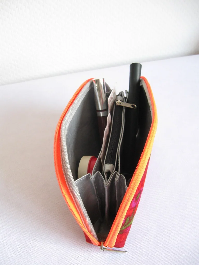 Im Inneren gibt es vier Fächer und ein Reißverschlussfach.