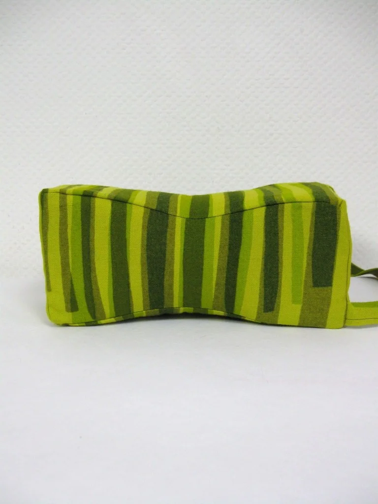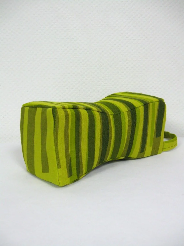 Praktisches Nackenkissen in klassischer Knochenform. Das Kissen besteht aus einem Schaumstoffkern und einem Baumwollbezug. Der Bezug hat einen Reißverschluss und kann zum Waschen abgezogen werden. An der Seite ist ein Henkel angebracht.