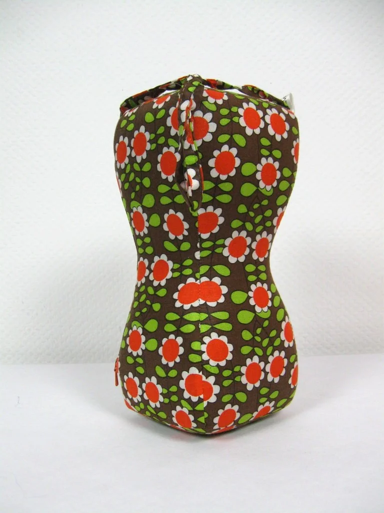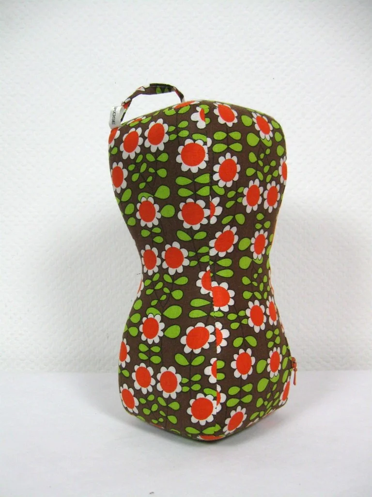 Das Kissen besteht aus einem Schaumstoffkern und einem Baumwollbezug. Der Bezug hat einen Reißverschluss und kann zum Waschen abgezogen werden. An der Seite ist ein Henkel angebracht.