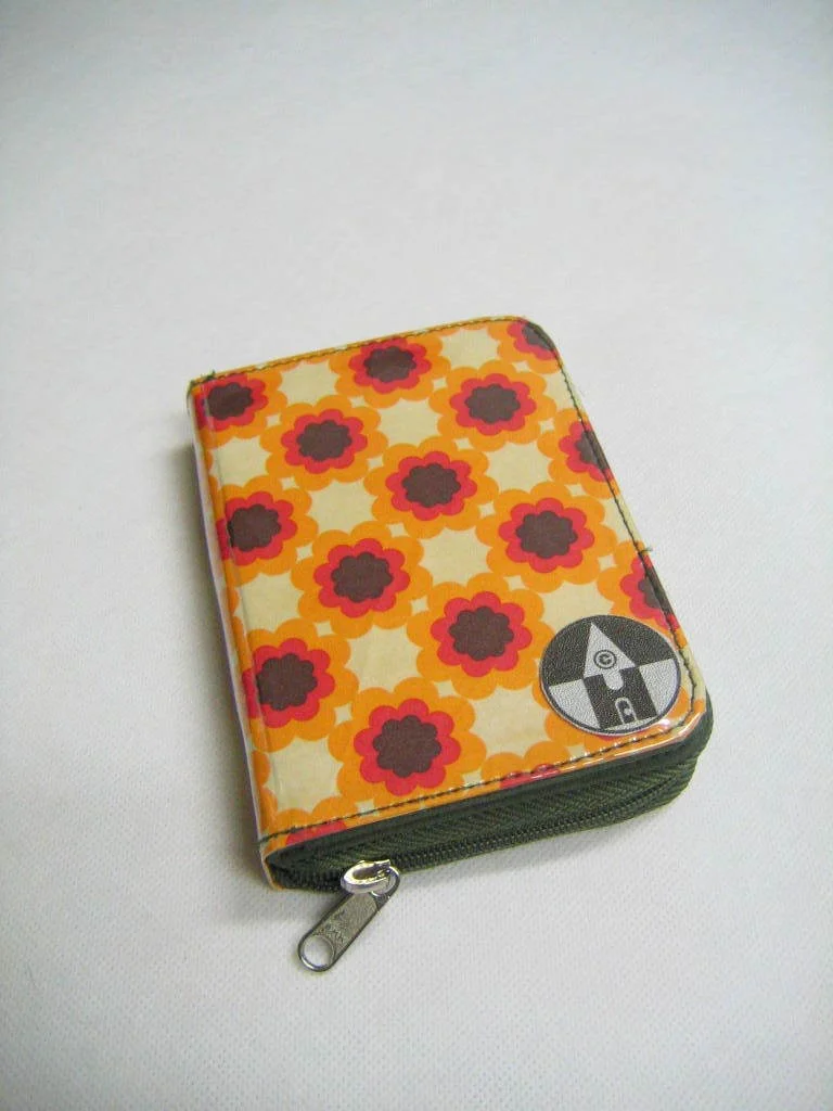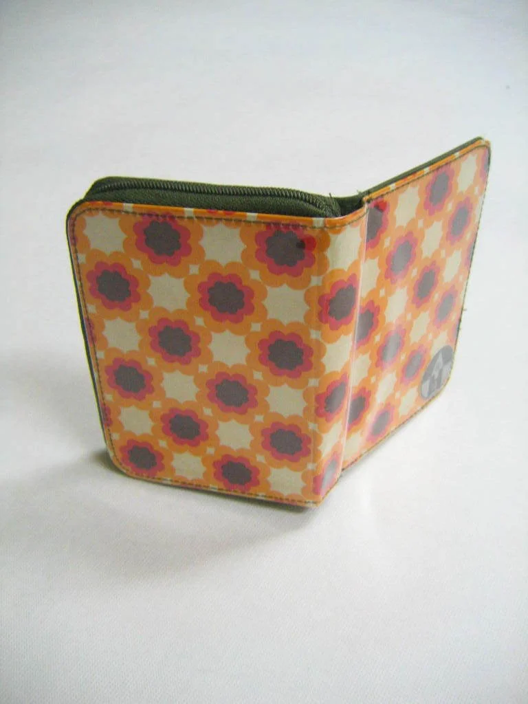 Portemonnaie mit original 70er Jahre Tapete bespannt und Druckknopf zum schließen. Die Tapete ist mit einer durchsichtigen Folie geschützt, so dass sie Schmutz und Wassergeschützt ist.