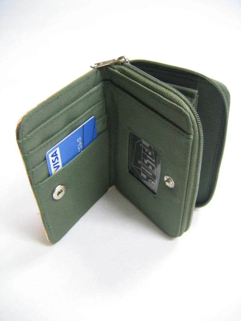 Innen ist das Portemonnaie mit einem grünen abwaschbaren Kunststoff ausgestattet.
