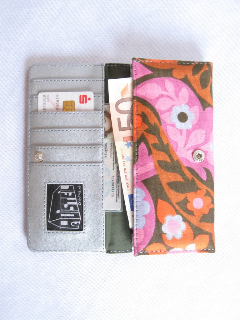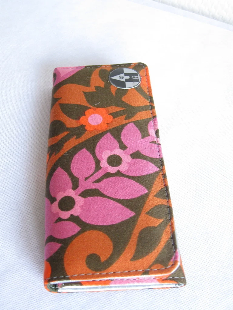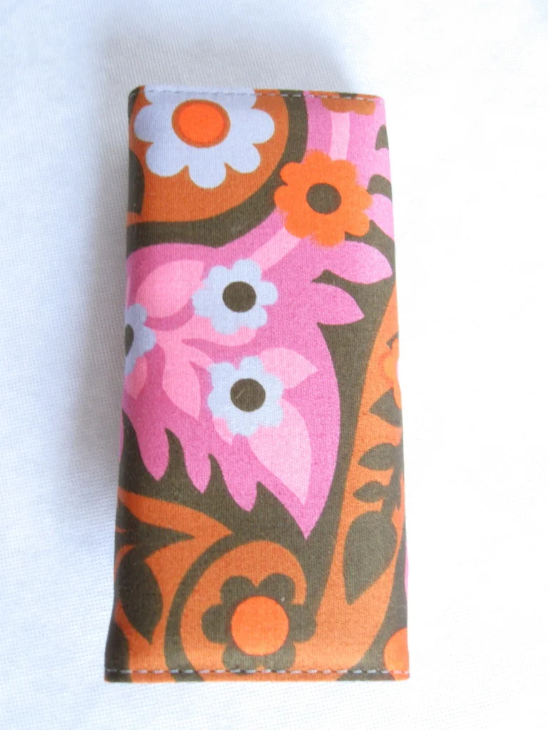 Designer-Portemonnaie aus original 70er Jahre Stoff, mit Druckknopf zum Schließen.