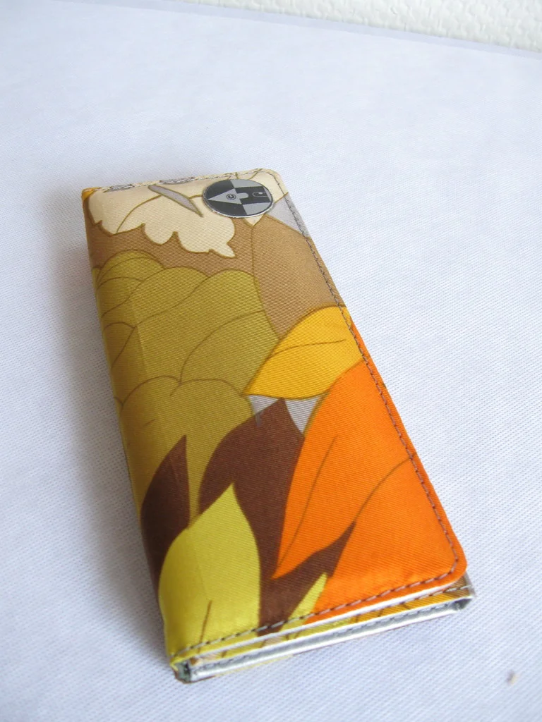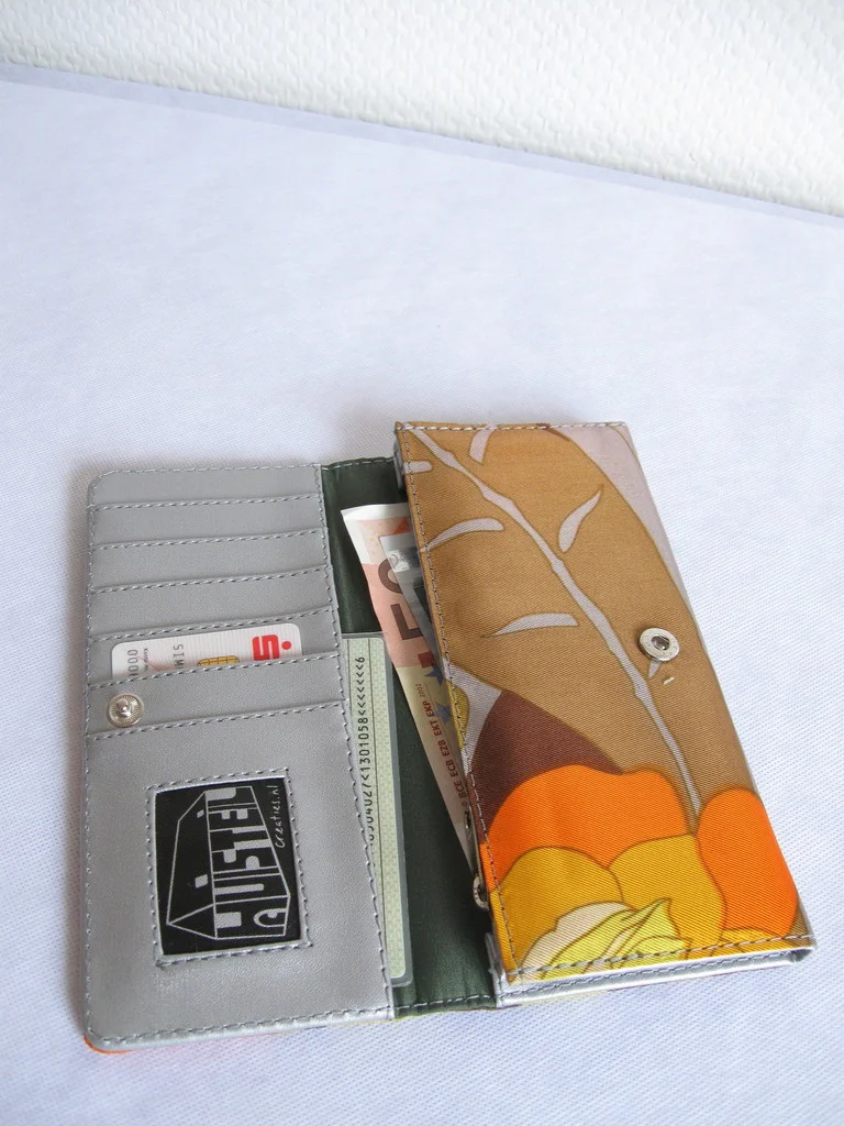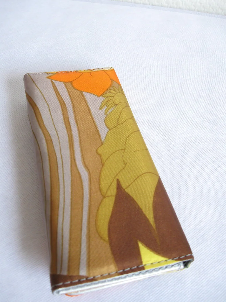 Designer-Portemonnaie aus original 70er Jahre Stoff, mit Druckknopf zum Schließen.