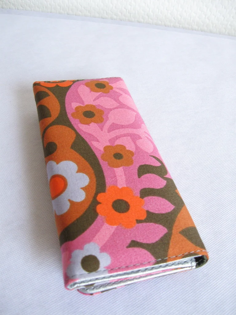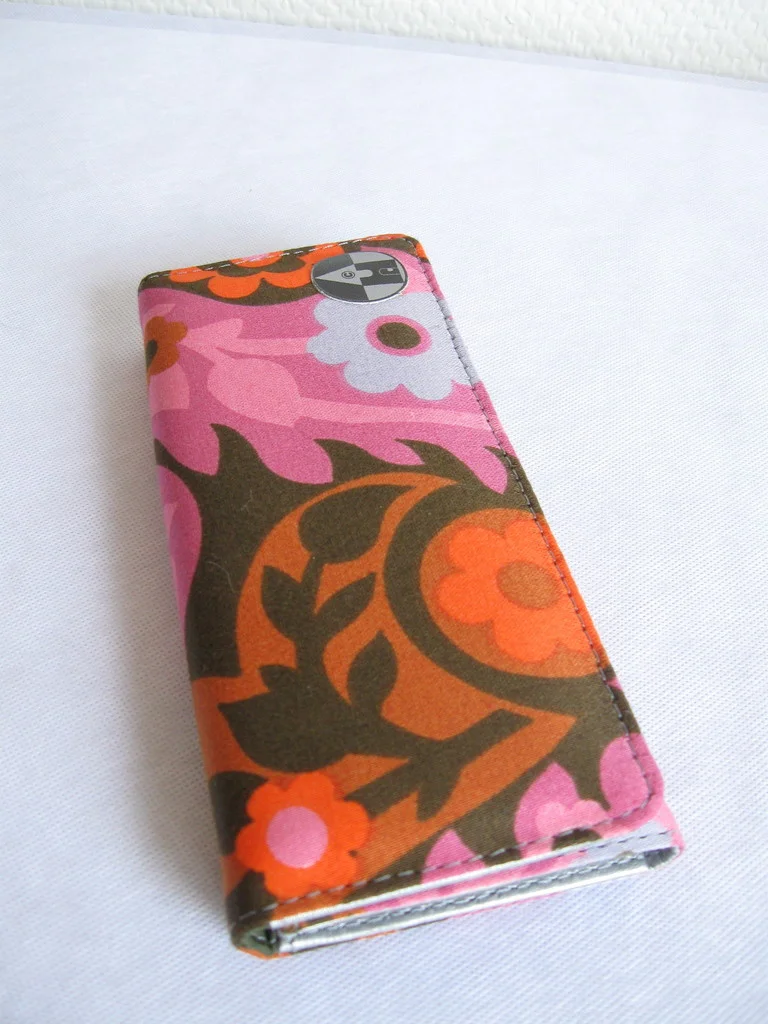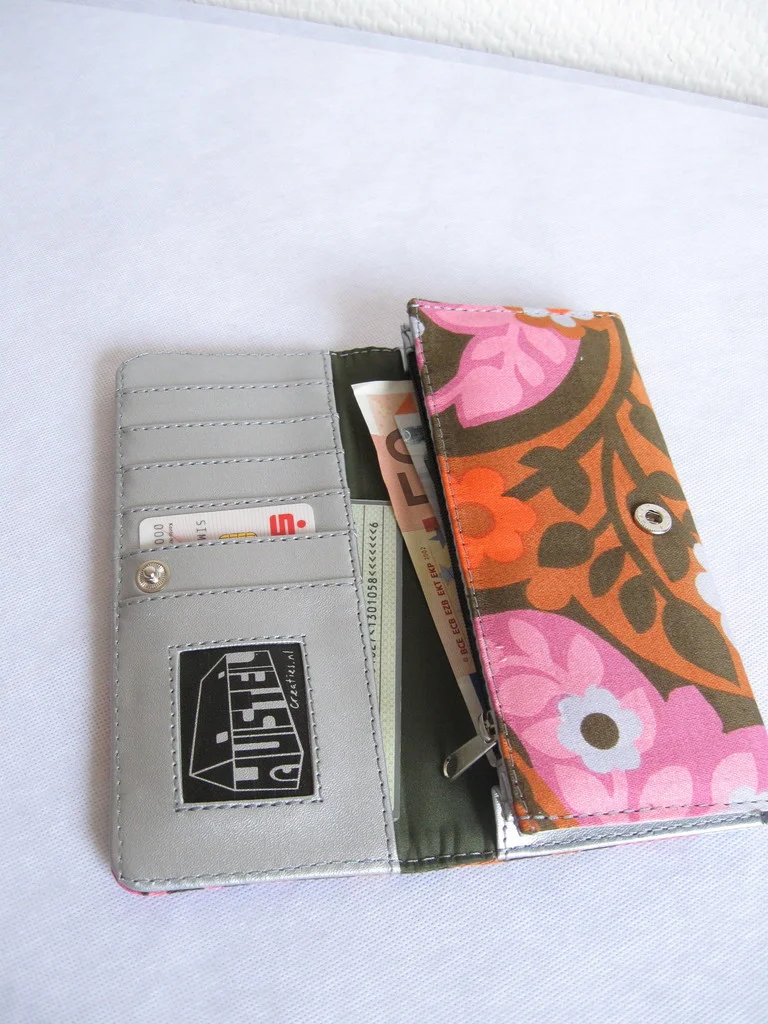 Designer-Portemonnaie aus original 70er Jahre Stoff, mit Druckknopf zum Schließen.