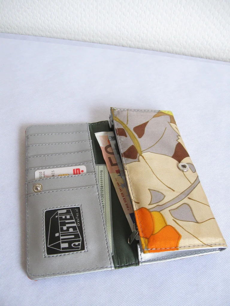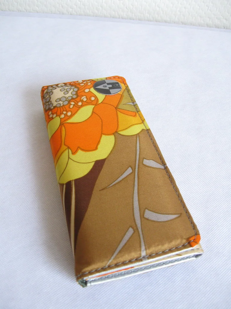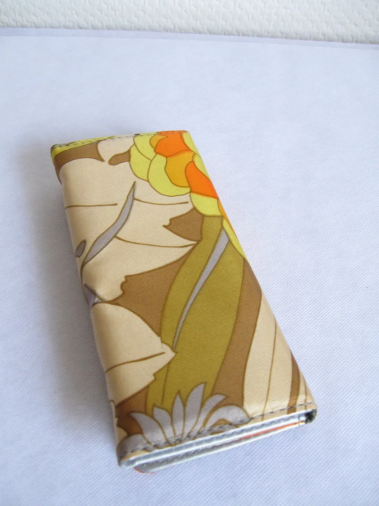 Designer-Portemonnaie aus original 70er Jahre Stoff, mit Druckknopf zum Schließen.