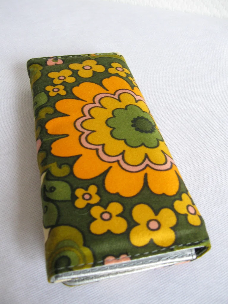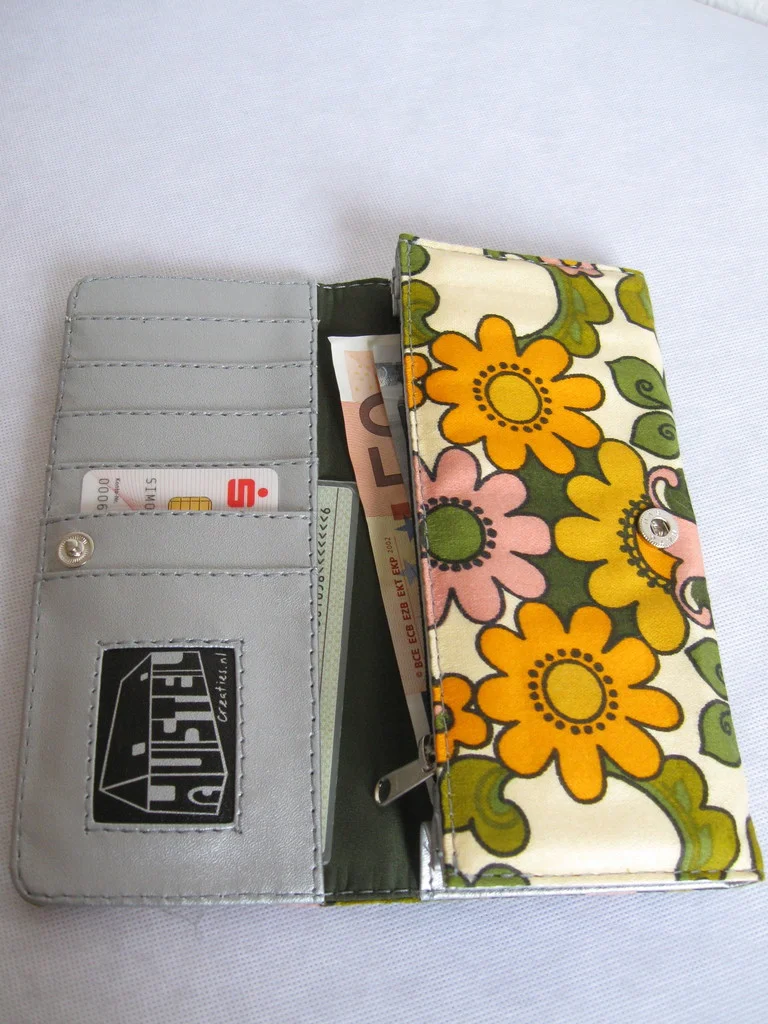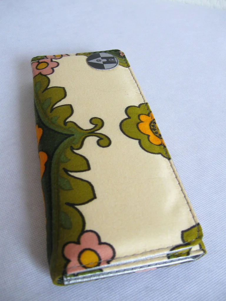 Designer-Portemonnaie aus original 70er Jahre Stoff, mit Druckknopf zum Schließen.
