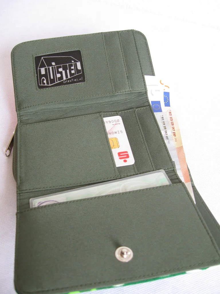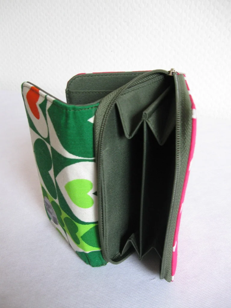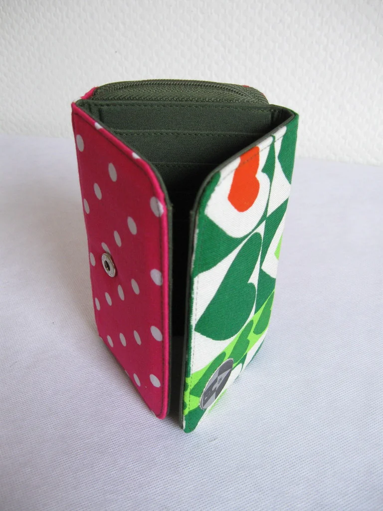 Designer-Portemonnaie aus original 70er Jahre Stoff, mit Druckknopf zum Schließen.