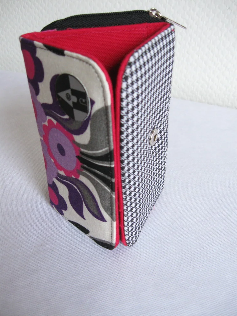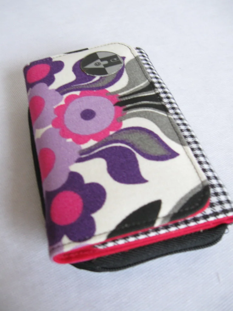 Designer-Portemonnaie aus original 70er Jahre Stoff, mit Druckknopf zum Schließen.