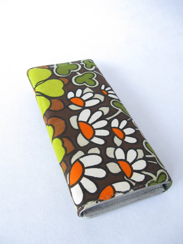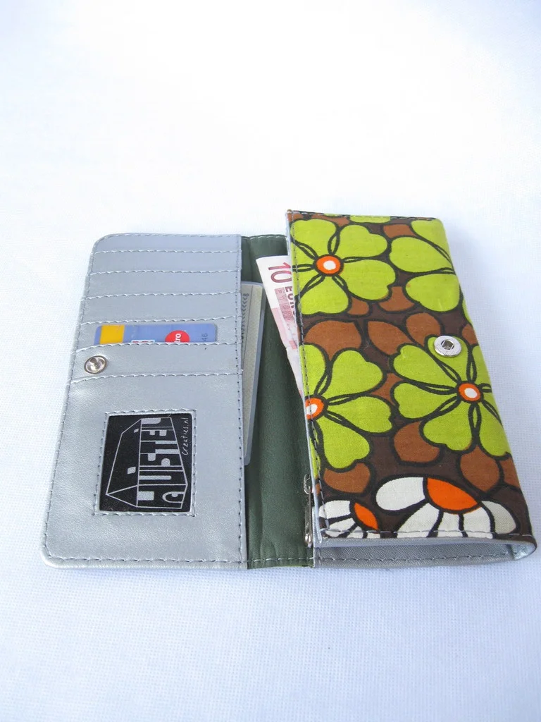 Designer-Portemonnaie aus original 70er Jahre Stoff, mit Druckknopf zum Schließen.