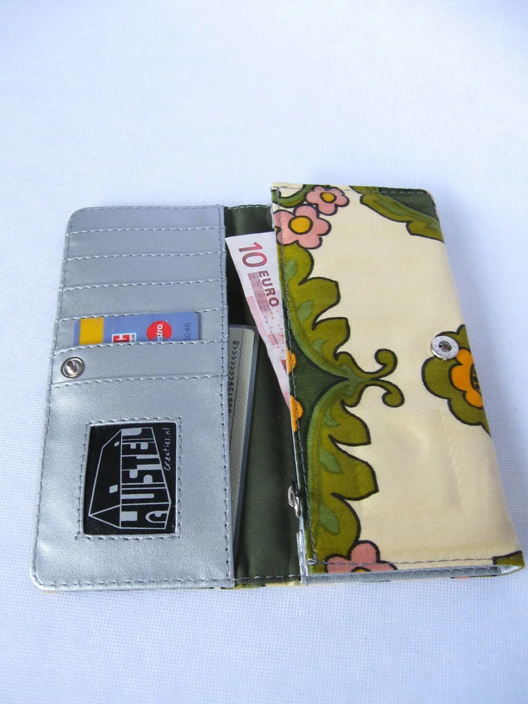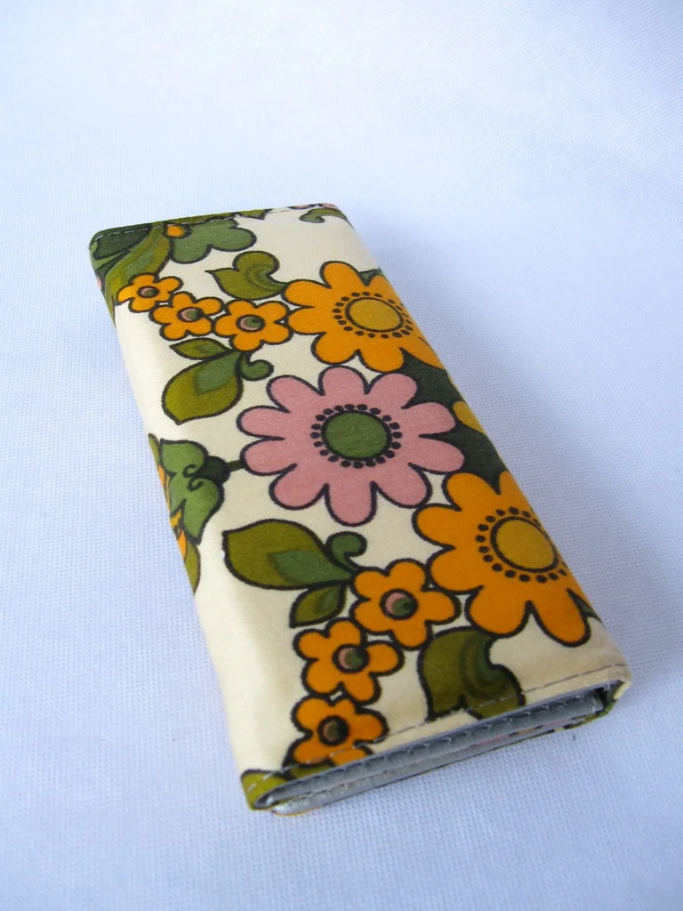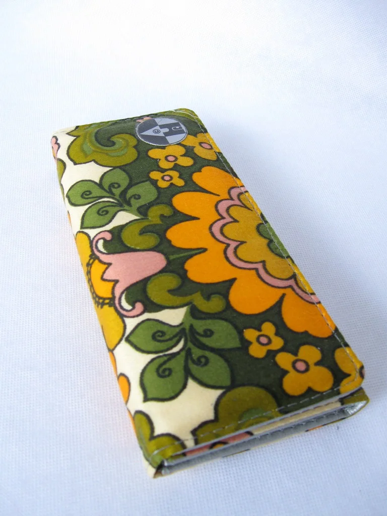 Designer-Portemonnaie aus original 70er Jahre Stoff, mit Druckknopf zum Schließen.