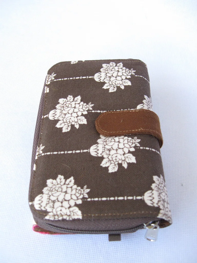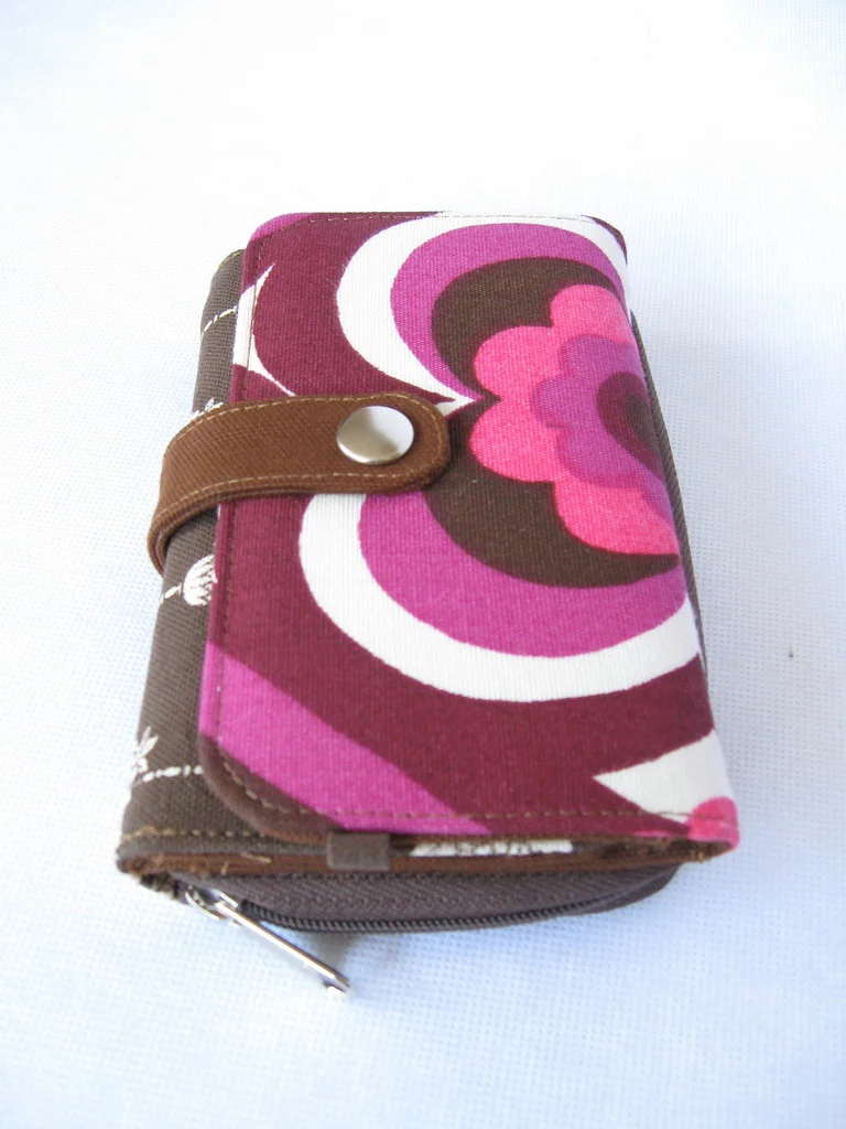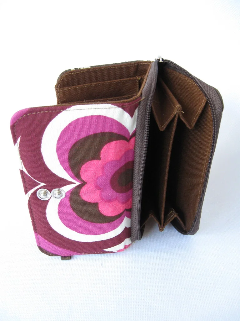 Designer-Portemonnaie aus Stoff im 70er Jahre-Design, mit 2 Druckknöpfen zum Schließen.