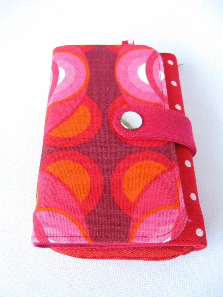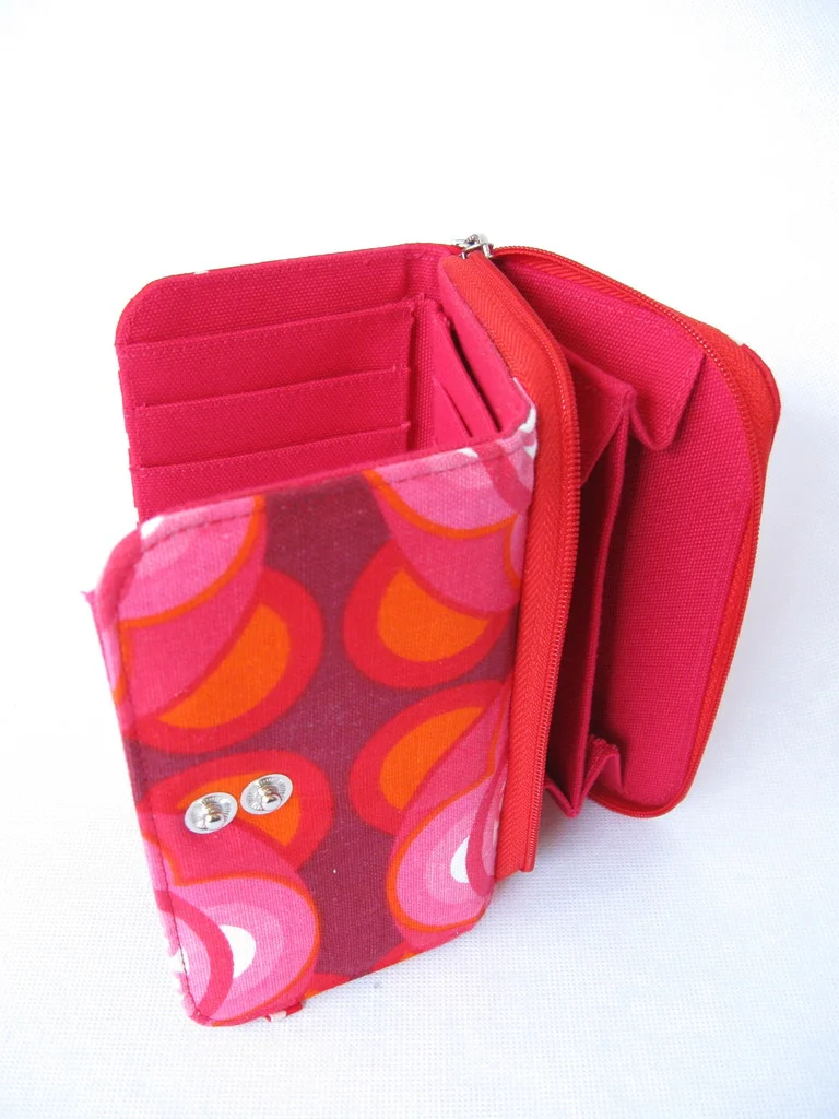Designer-Portemonnaie aus Stoff im 70er Jahre-Design, mit 2 Druckknöpfen zum Schließen.
