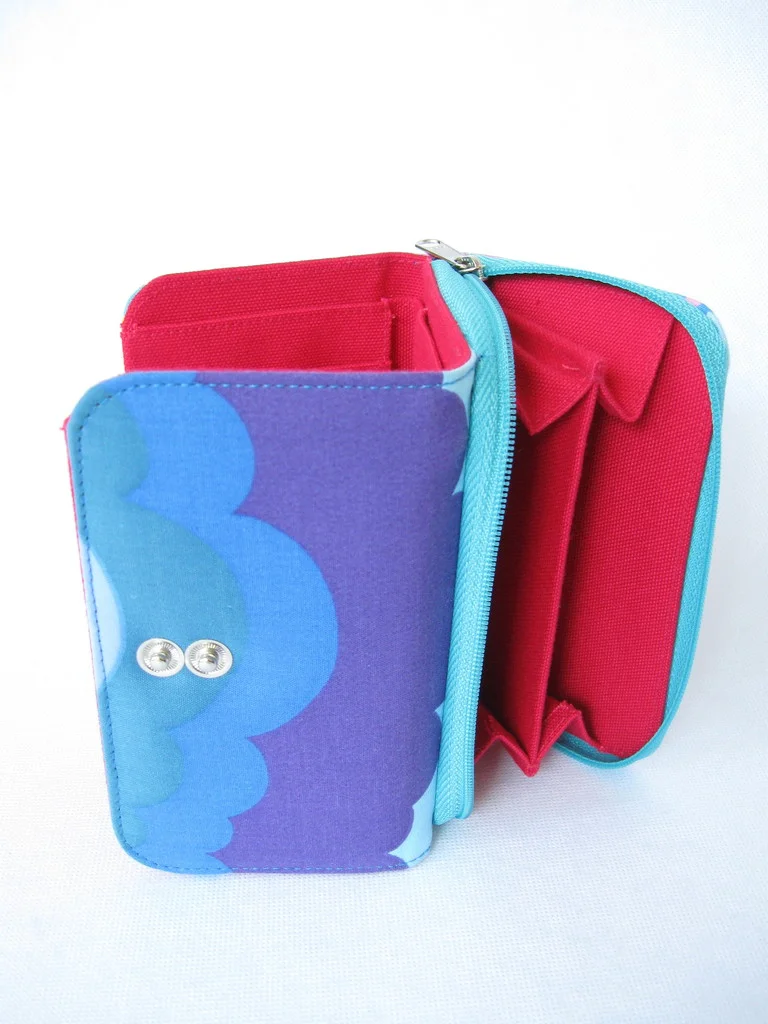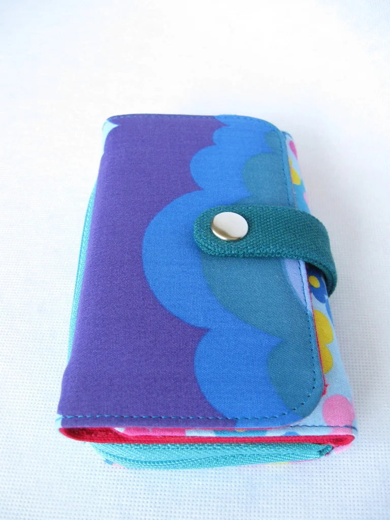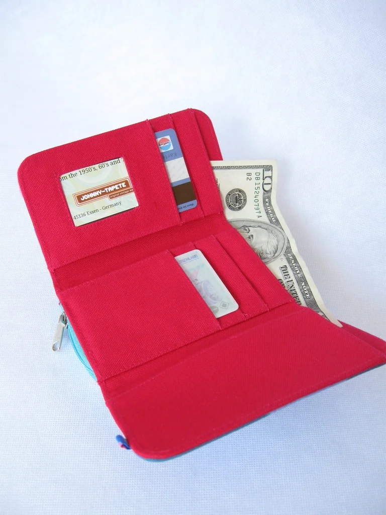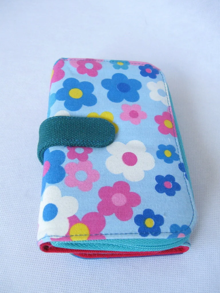 Designer-Portemonnaie aus Stoff im 70er Jahre-Design, mit 2 Druckknöpfen zum Schließen.