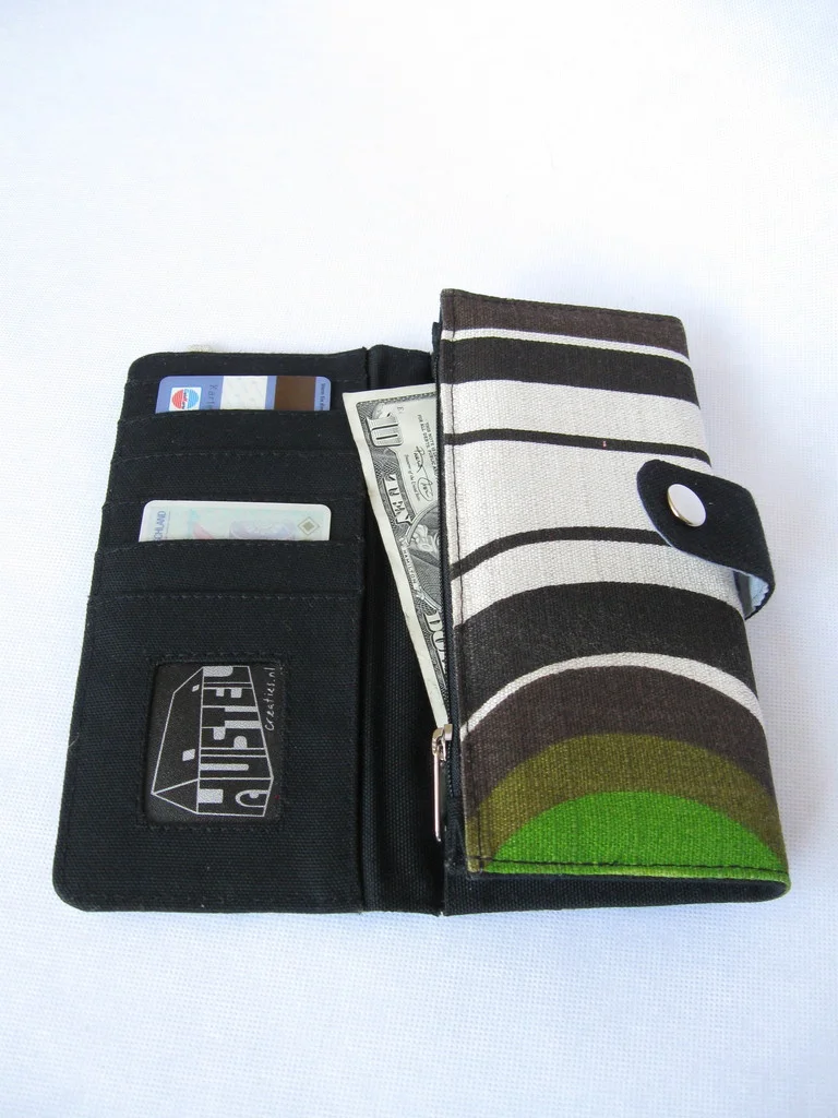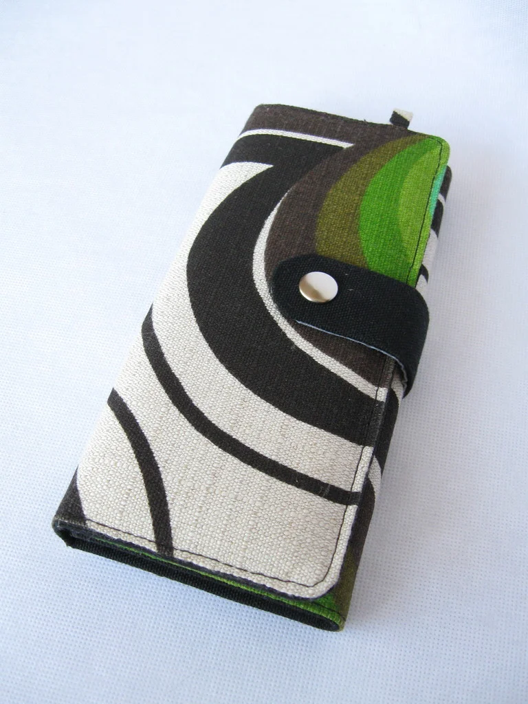 Designer-Portemonnaie aus original 70er Jahre Stoff, mit zwei Druckknöpfen zum Schließen.