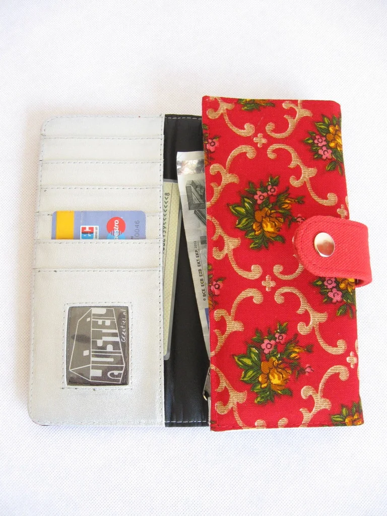 Es beinhaltet 1 Fach mit Ausschnitt (für z.B. Passfoto), 5 Einschubfächer (für z.B. EC-Karte), 1 längeres Fach (für z.B. Personalausweis), 1 Reißverschlussfach für Münzgeld und 2 Fächer daneben für Papiergeld.