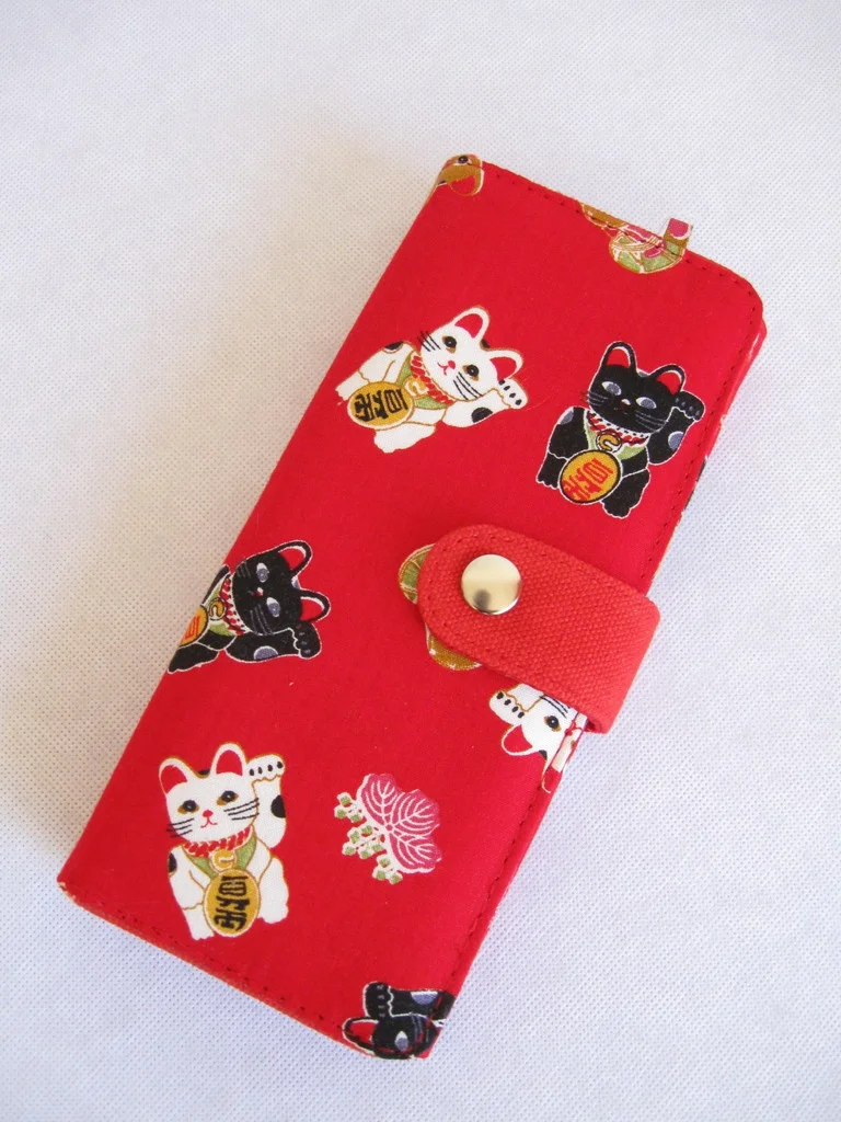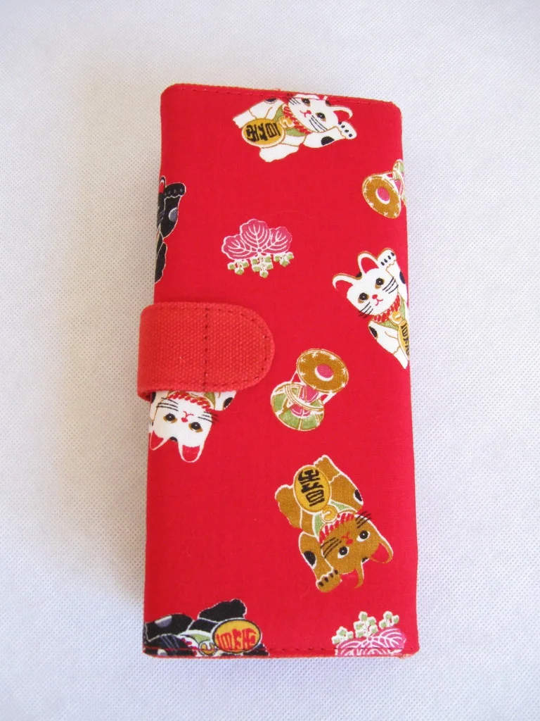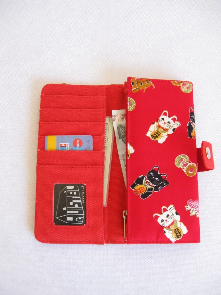 Designer-Portemonnaie mit Katzenmotiv und 2 Druckknöpfen zum Schließen
