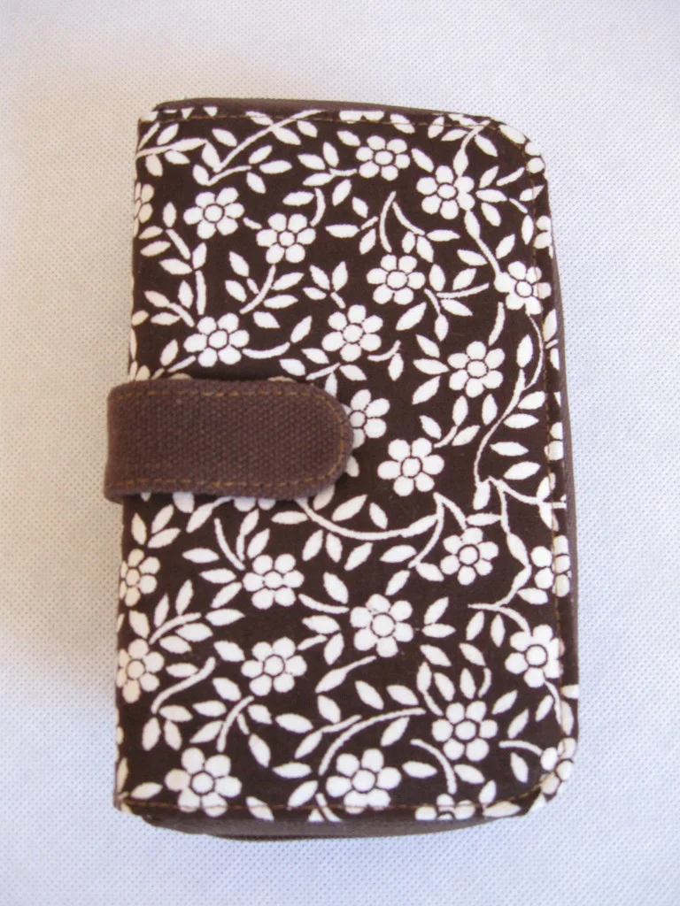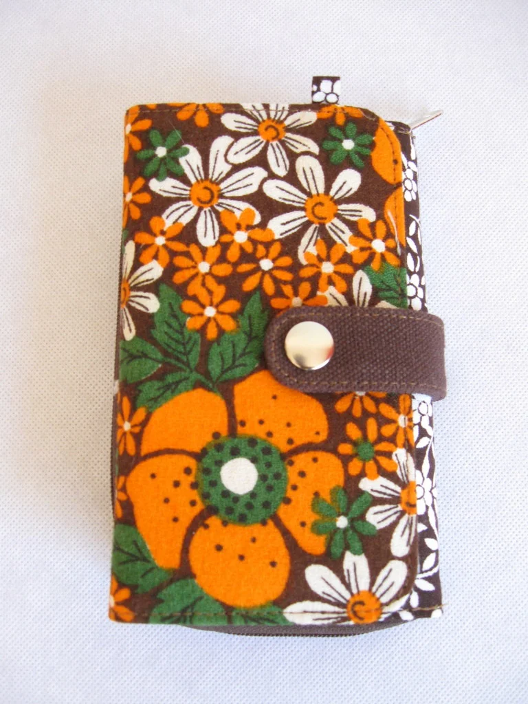 Designer-Portemonnaie aus Stoff im 70er Jahre-Design, mit 2 Druckknöpfen zum Schließen.