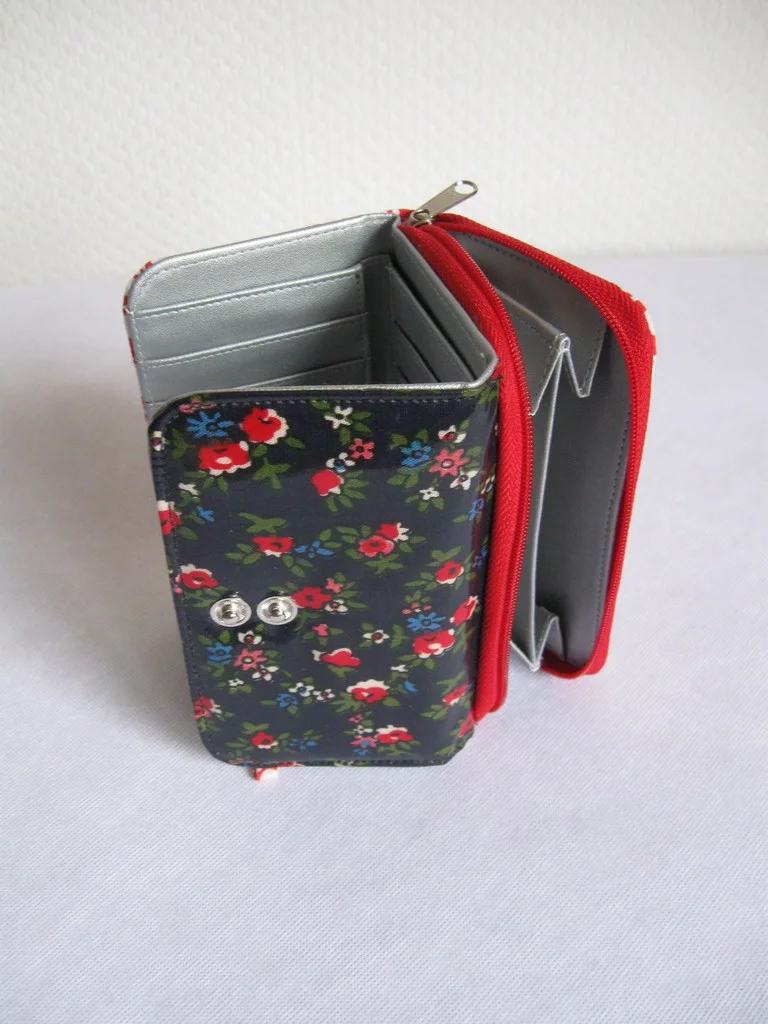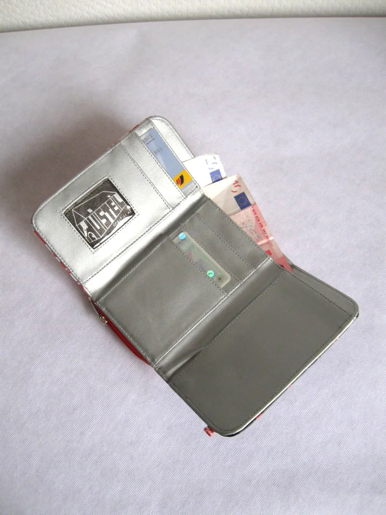 Das Innere des Portemonnaies ist aus feinem, glattem Kunststoff. Die Front ist aus wasserabweisendem Kuststoff.