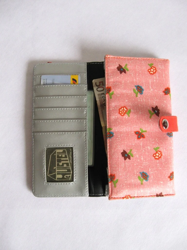 Es beinhaltet 1 Fach mit Ausschnitt (für z.B. Passfoto), 5 Einschubfächer (für z.B. EC-Karte), 1 längeres Fach (für z.B.Personalausweis), 1 Reißverschlussfach für Münzgeld und 2 Fächer daneben für Papiergeld.