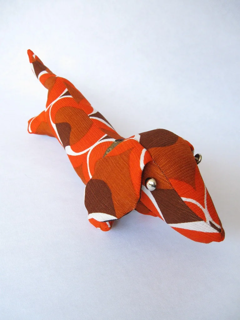 Kultiger Stoffdackel aus original 70er Jahre-Stoff