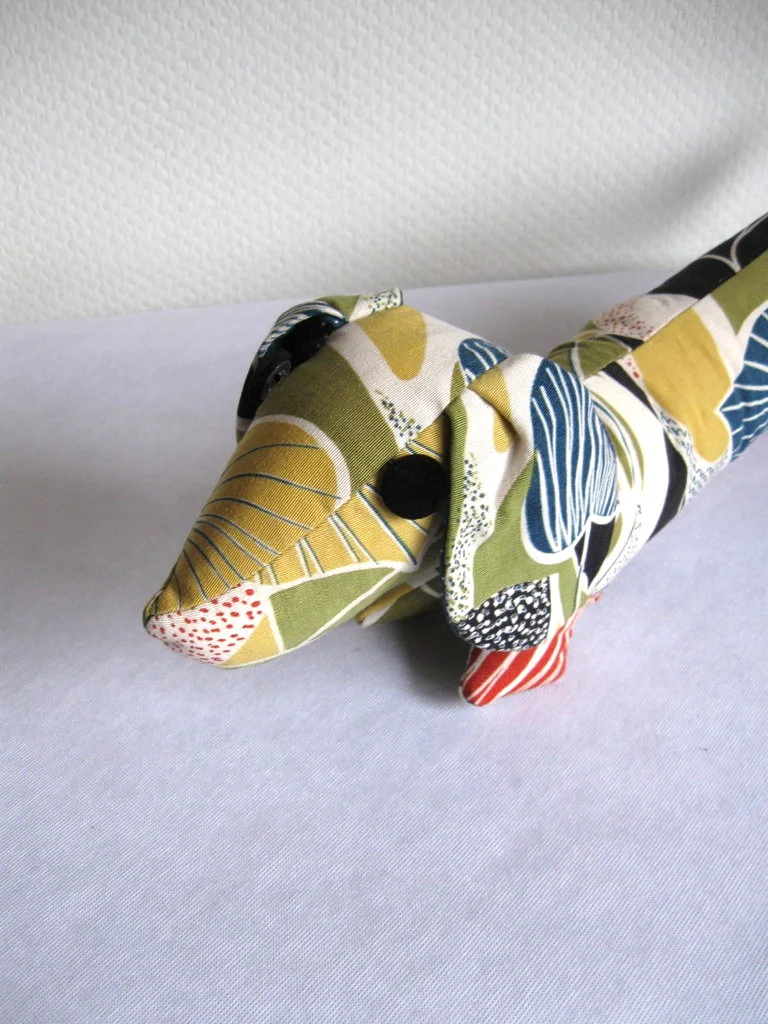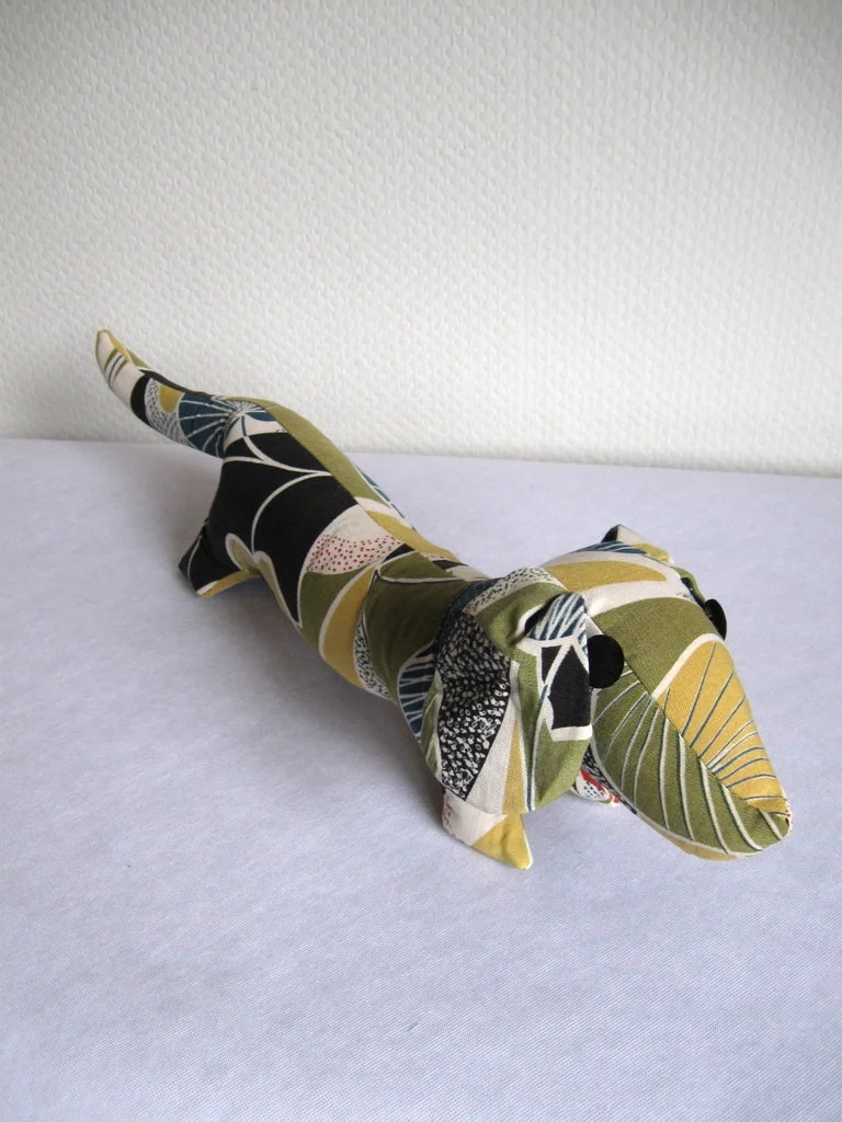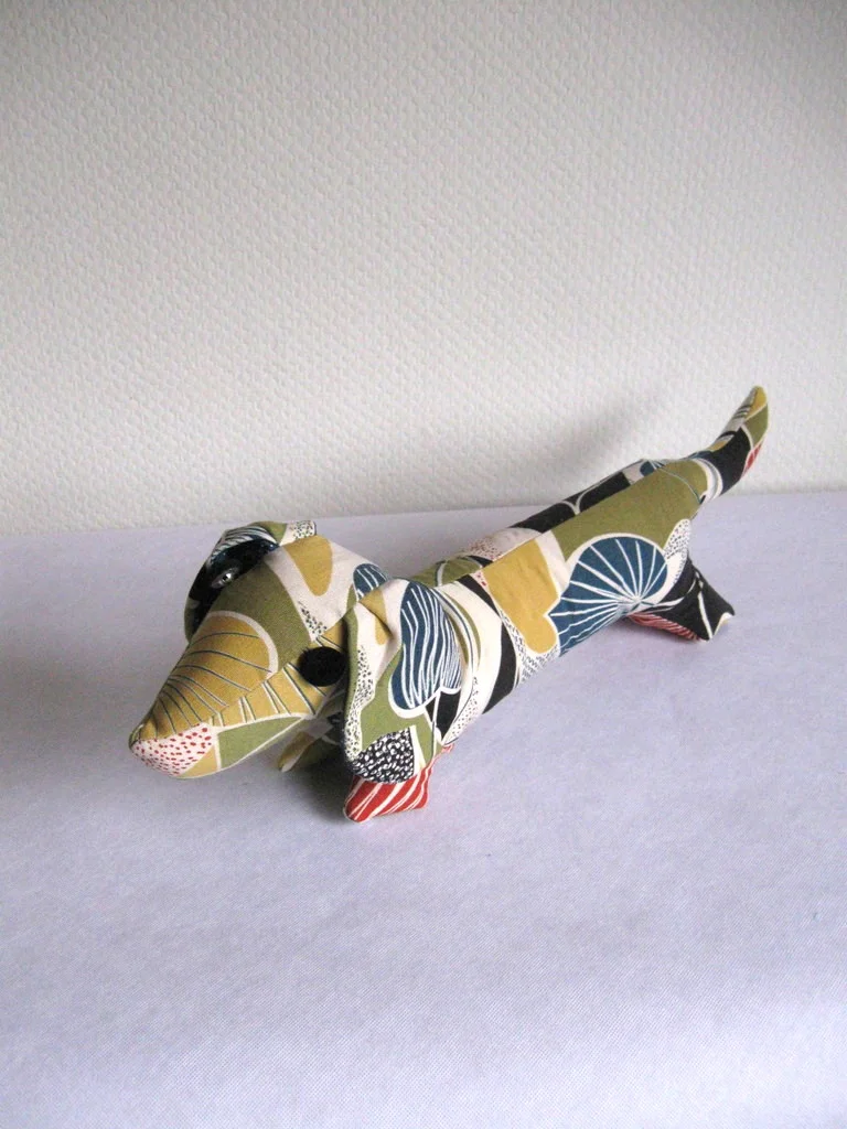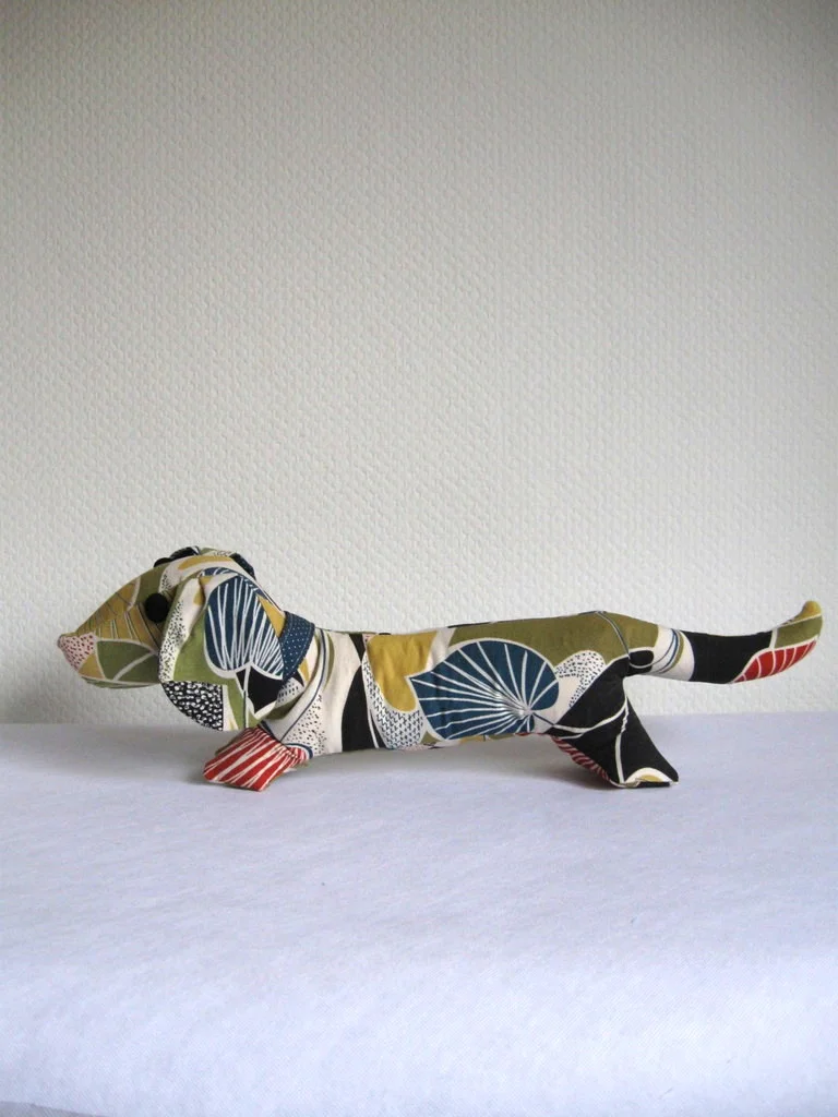 Kultiger Stoffdackel aus original 50er Jahre-Stoff