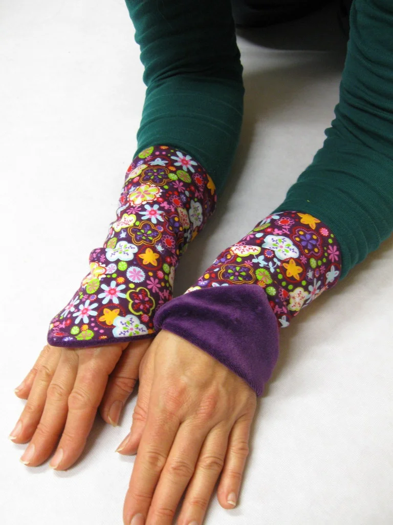 Die Stulpen sind aus Baumwolle und Nickistoff und können auch gewendet getragen werden.