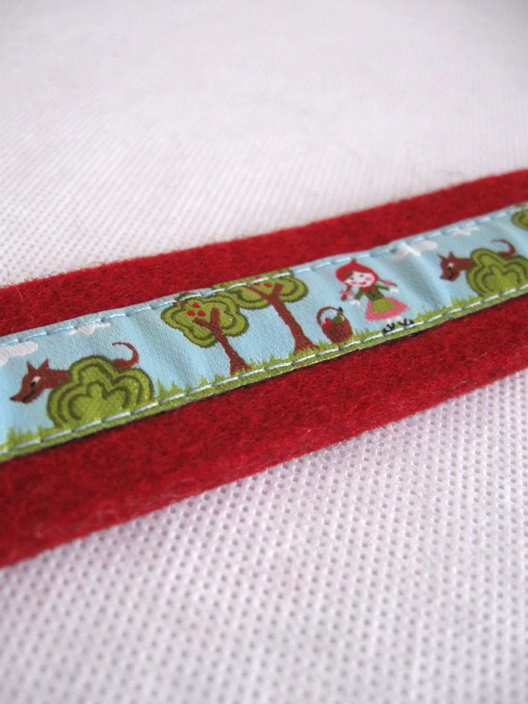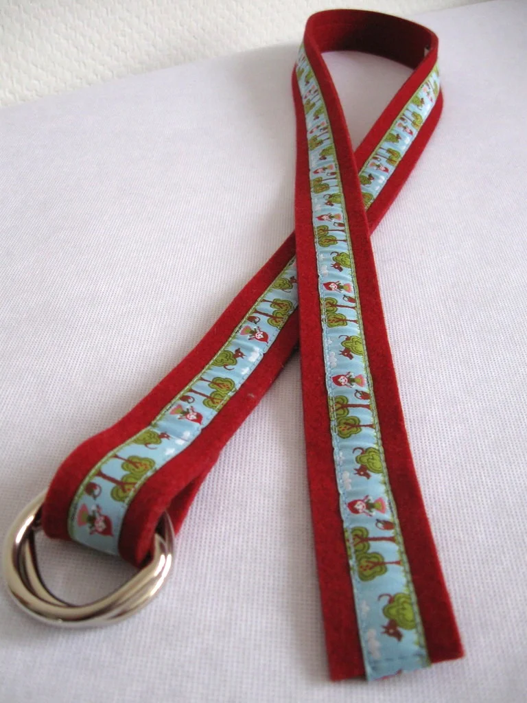 Der Gürtel hat eine aufgenähte Stoffbordüre mit schönem Motiv.