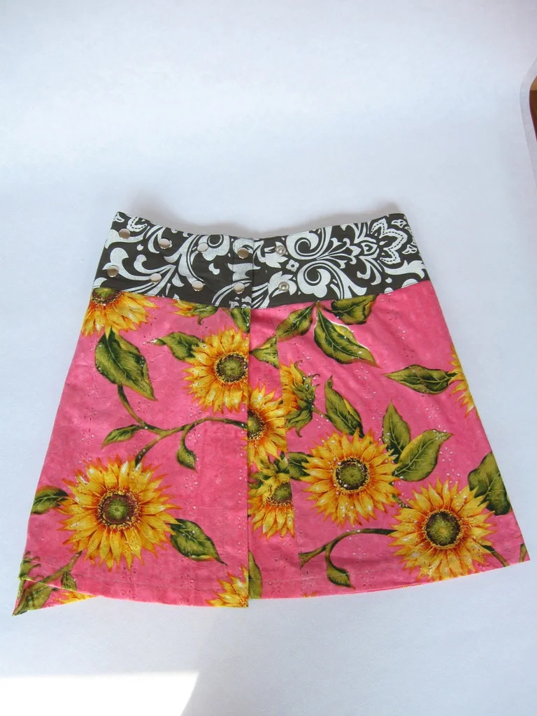 Der Rock ist aus Baumwolle und besticht durch sein tolles Design und seine Lochstickerei. Er ist innen zusätzlich mit einem leichten, weißen Baumwollstoff gefüttert, was den Tragekomfort erhöht. Durch die genieteten Drückknöpfe lässt sich der Rock von Größe 36 bis Größe 44 verstellen.