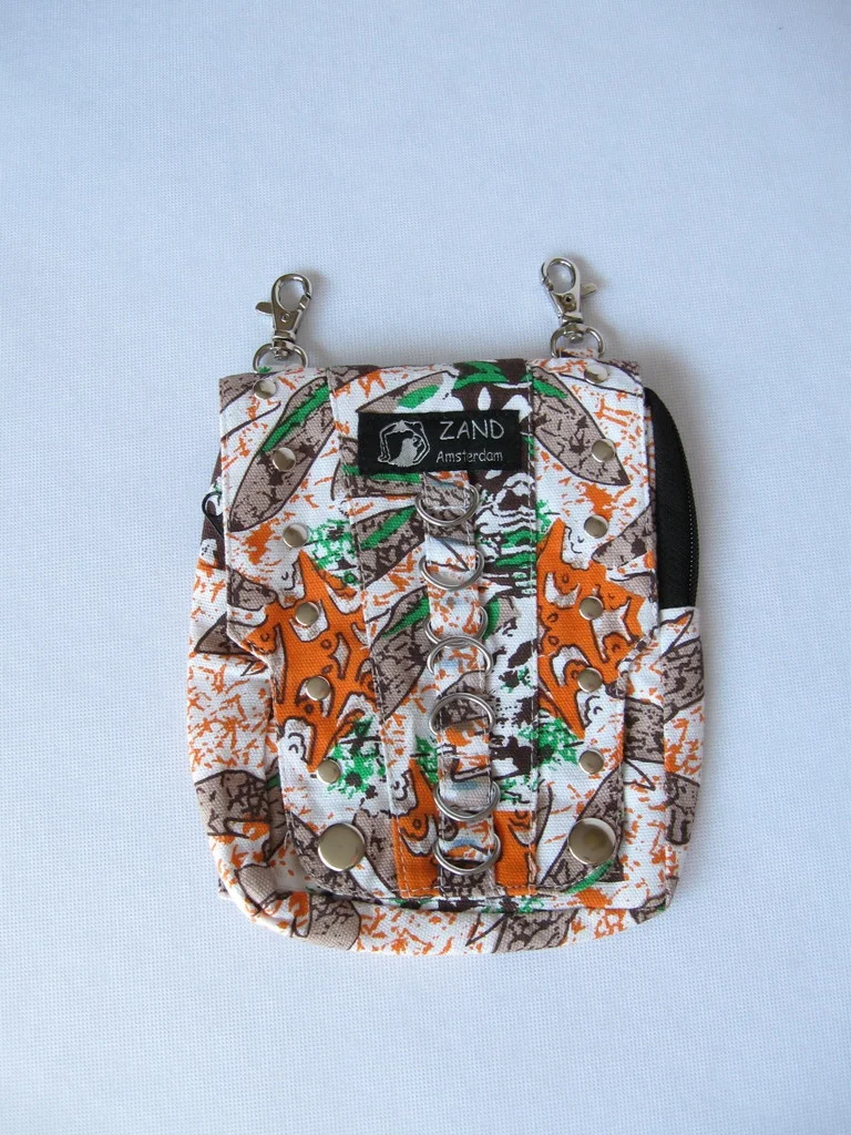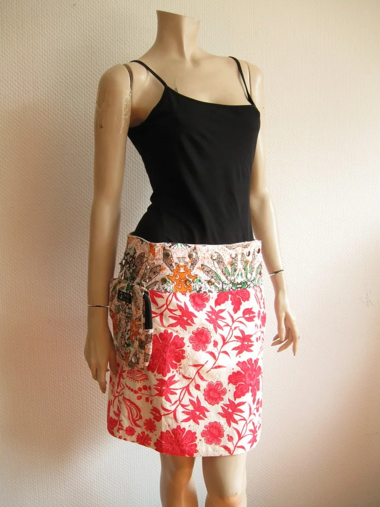 Als nettes Accessoires hat der Rock eine abnehmbare Tasche. Diese ist mit Karabinerhaken am Rock befestigt. Die Tasche ist mit verchromten Ringen und Nieten abgesetzt und wird mit zwei Druckknöpfen verschlossen. Die zwei Fächer der Tasche werden je mit einem Reißverschluss geöffnet.