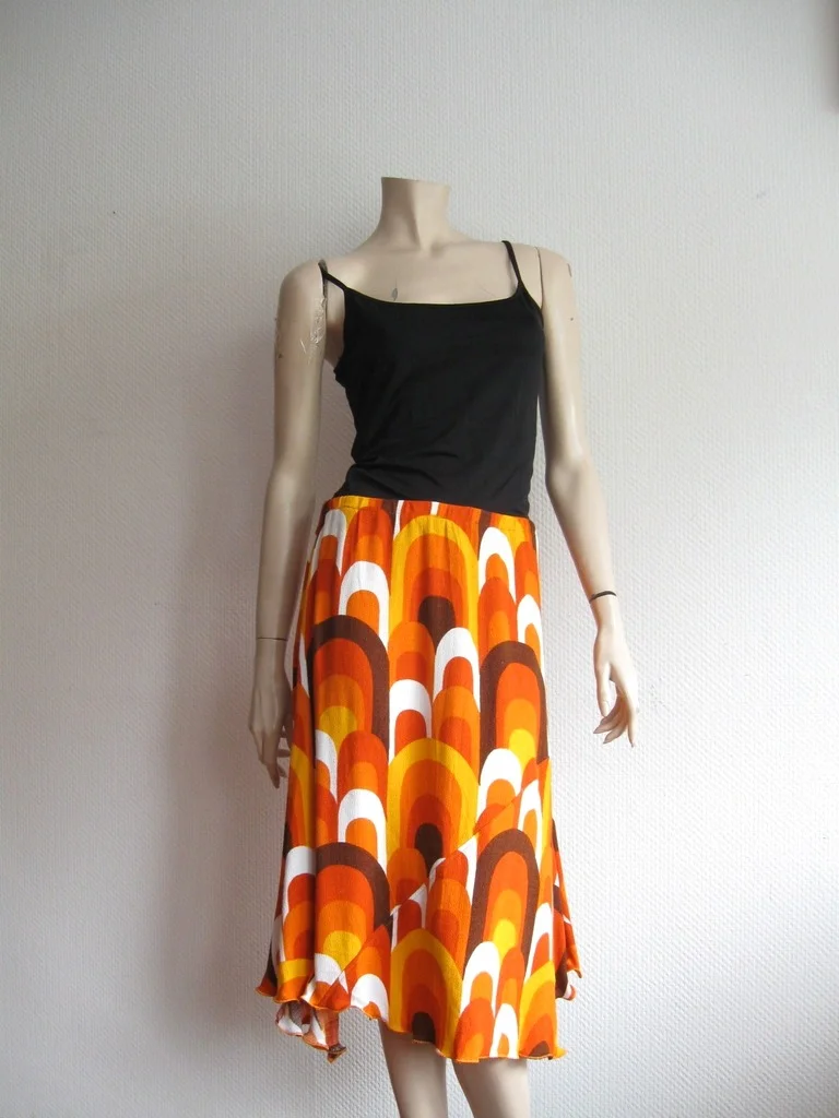Stylischer Zipfelrock aus echtem 1970er Jahre-Stoff