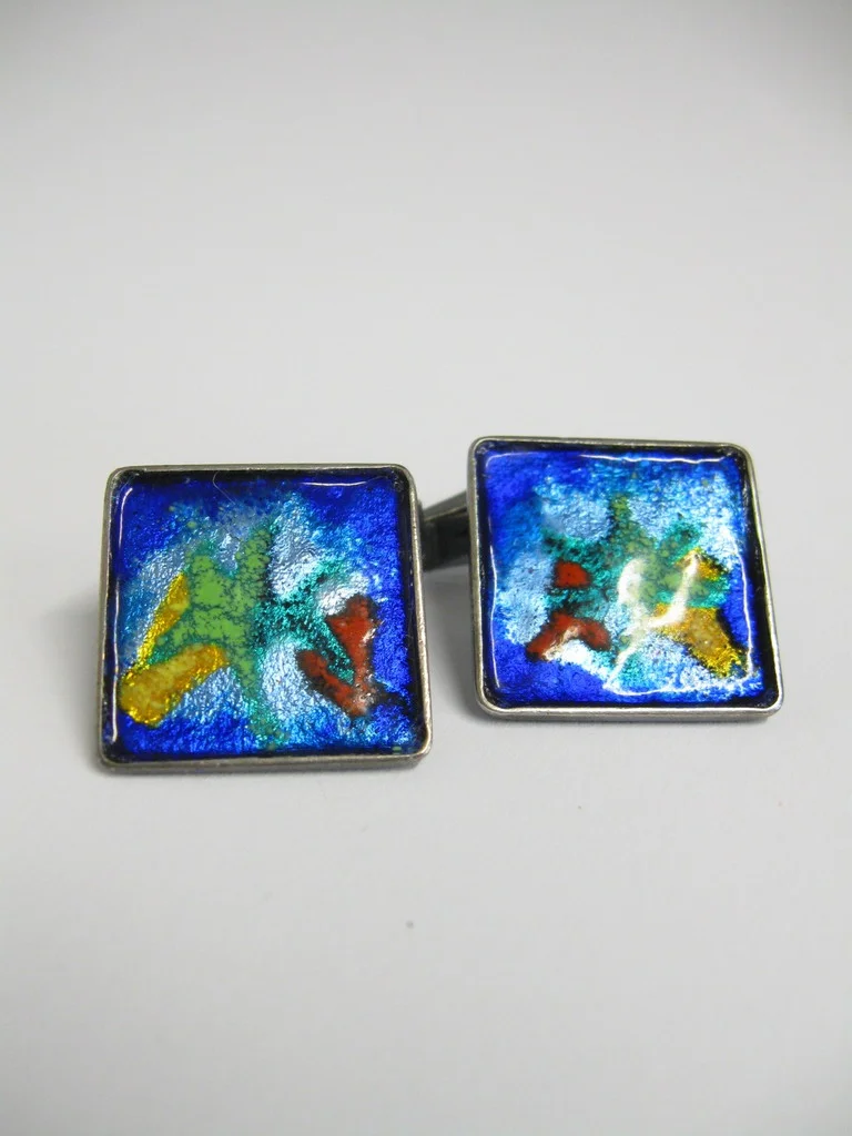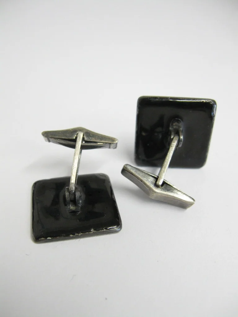 Die Knöpfe bestehen aus Metall und Emaille. Als Schließmechanik dient ein Schwenkbügel.