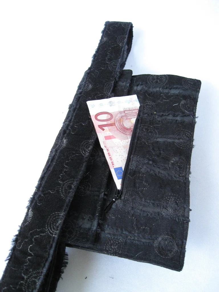 Auf der Rückseite befindet sich ein Geheimfach mit Reißverschluss (ca. 7 x 15 cm).