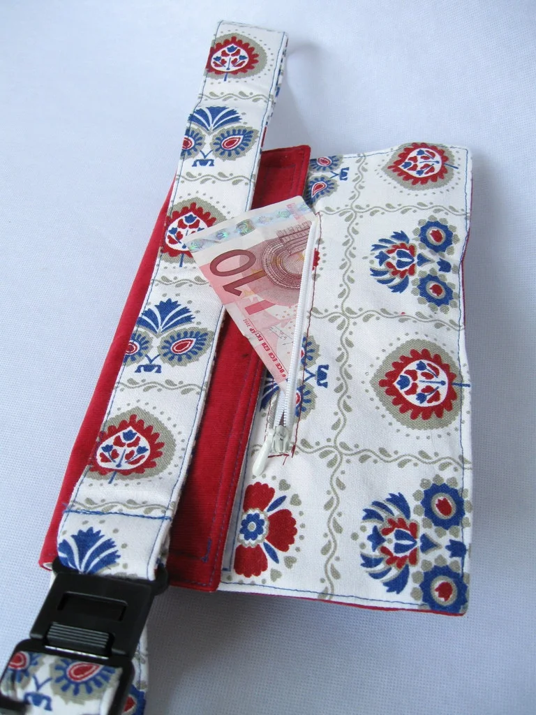 Auf der Rückseite befindet sich ein Geheimfach mit Reißverschluss (ca. 7 x 15 cm).
