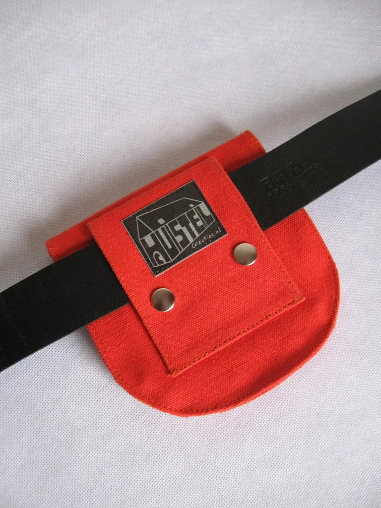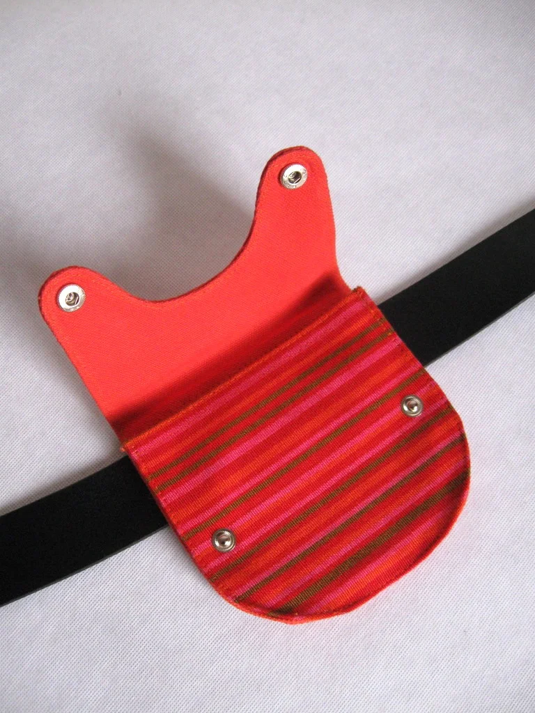 Auf der Rückseite befindet sich eine Gürtelschlaufe für Gürtel mit einer Breite von bis zu 8 cm. Die Schlaufe ist im unteren Drittel ebenfalls mit zwei Druckknöpfen versehen, die für einen sicheren Halt an kleinen Gürteln sorgen.