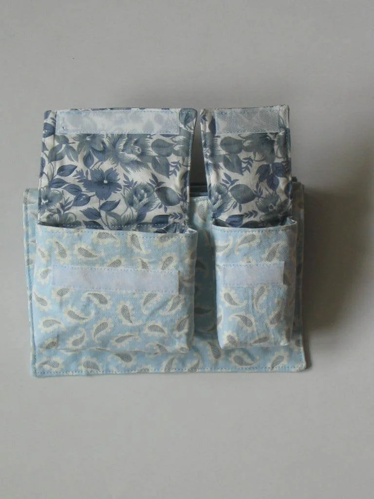 Beide Täschchen sind Innen mit einem hübschen kleingemusterten Stoff gefüttert. Auf der Rückseite ist eine Extratasche als "Geheimfach" mit Reißverschluß.