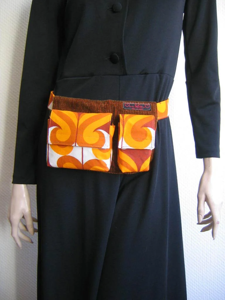 Handgenähte Gürteltasche der Designerin SiSie aus original 70er Jahre Stoff auf Cordstoff.
