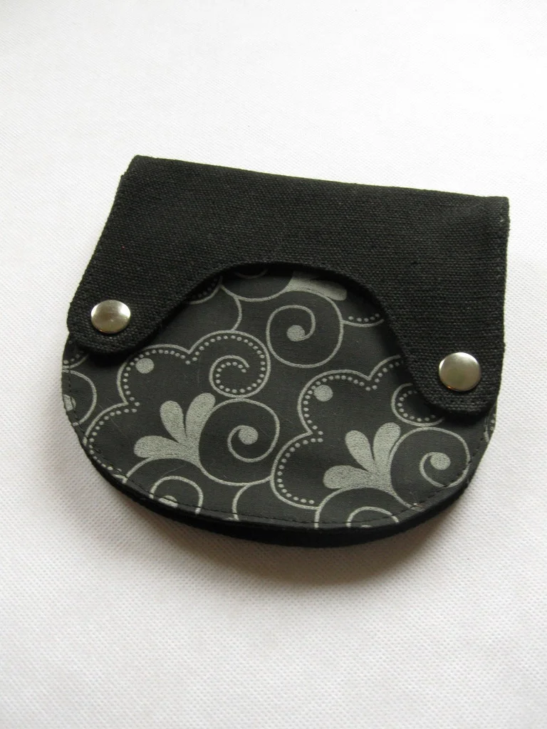 Die Tasche ist aus Baumwolle und kann mit zwei Druckknöpfen verschlossen werden.