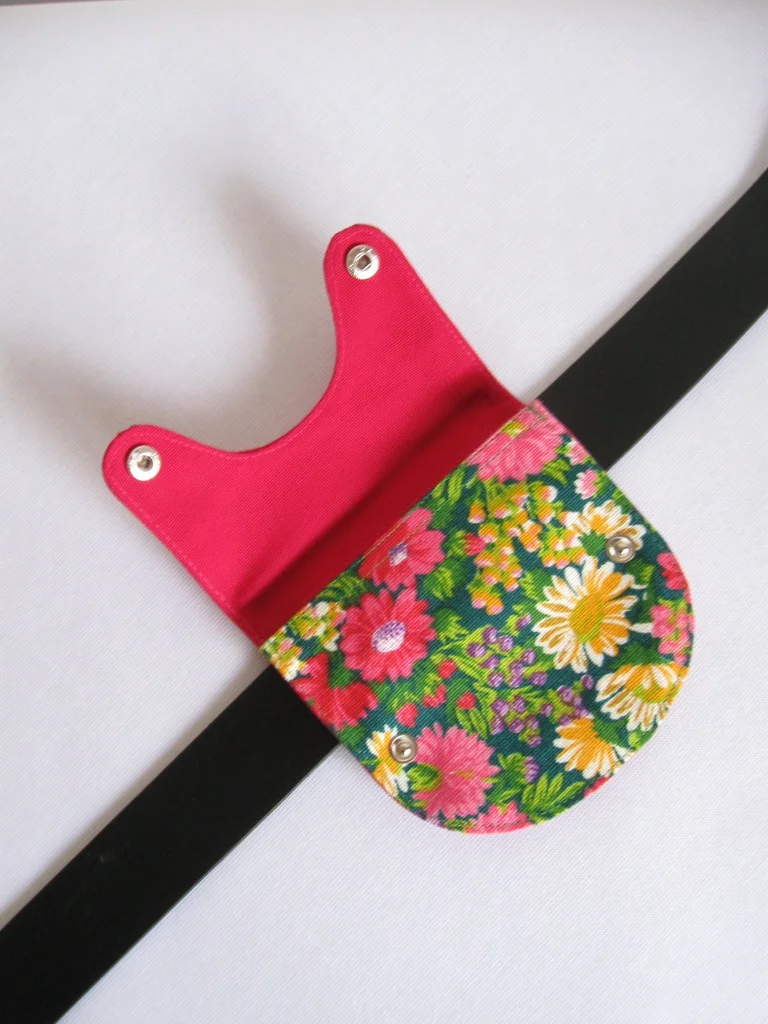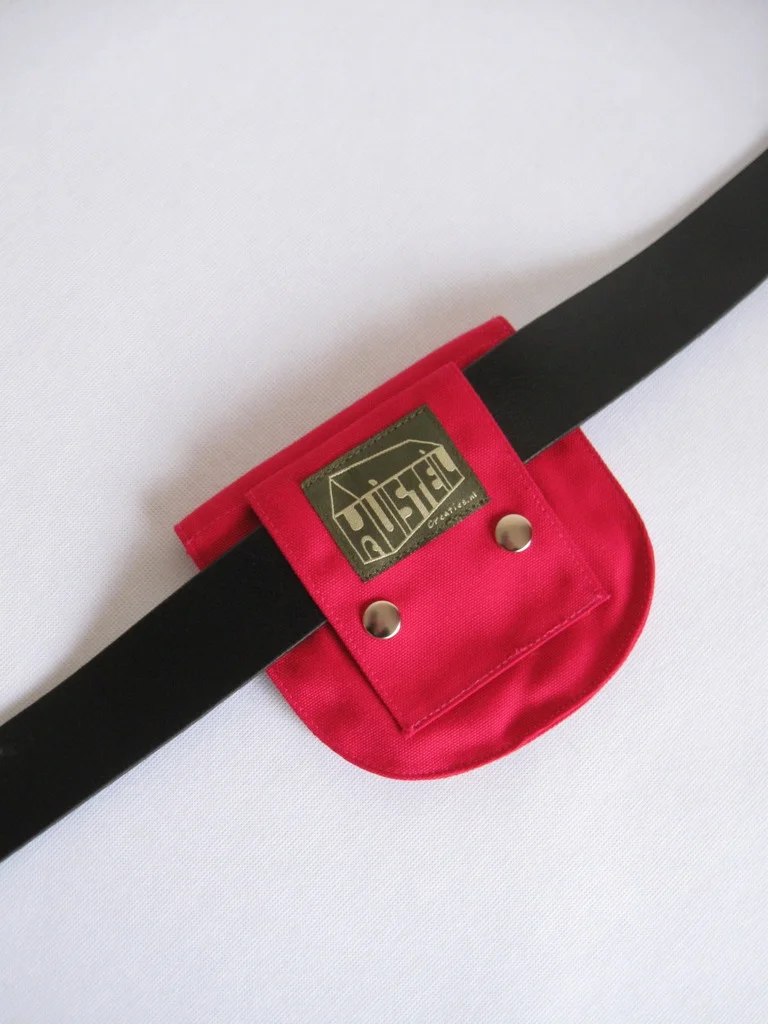 Auf der Rückseite befindet sich eine Gürteschlaufe für Gürtel mit einer Breite von bis zu 8 cm. Die Schlaufe ist im unteren Drittel ebenfalls mit zwei Druckknöpfen versehen, die für einen sicheren Halt an kleinen Gürteln sorgen.