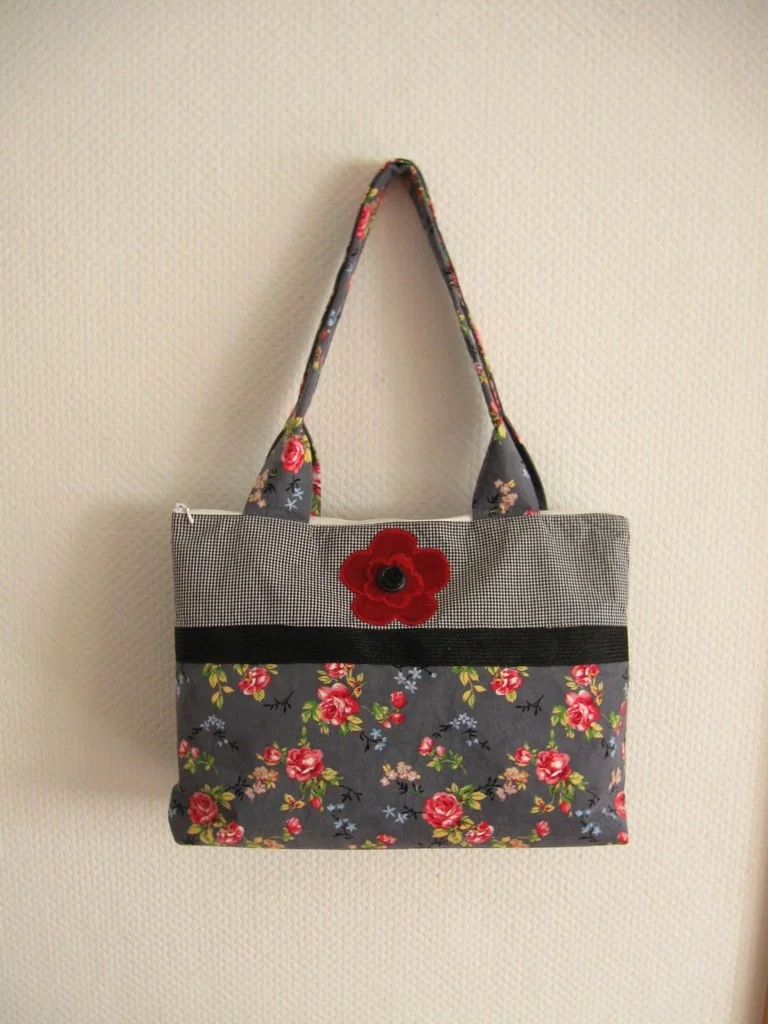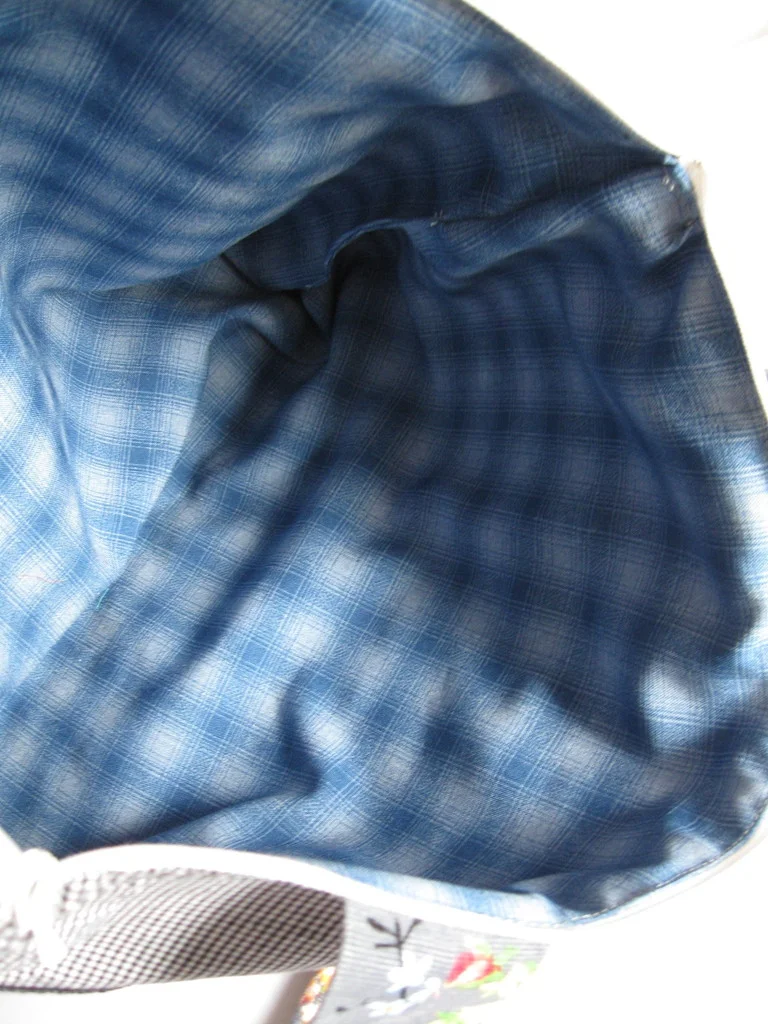 Die Tasche ist aus feinen Baumwollstoffen und wird mit einem Reißverschluss verschlossen.