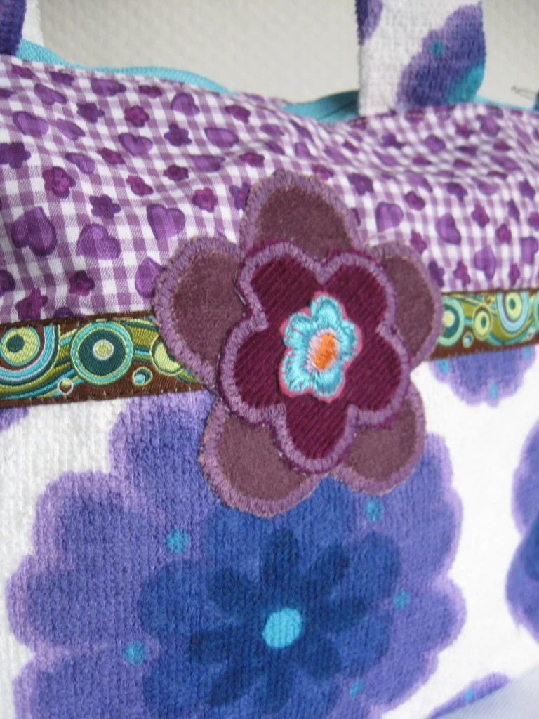 Der Boden ist verstärkt und vorne hat die Tasche eine hübsche Applikation.