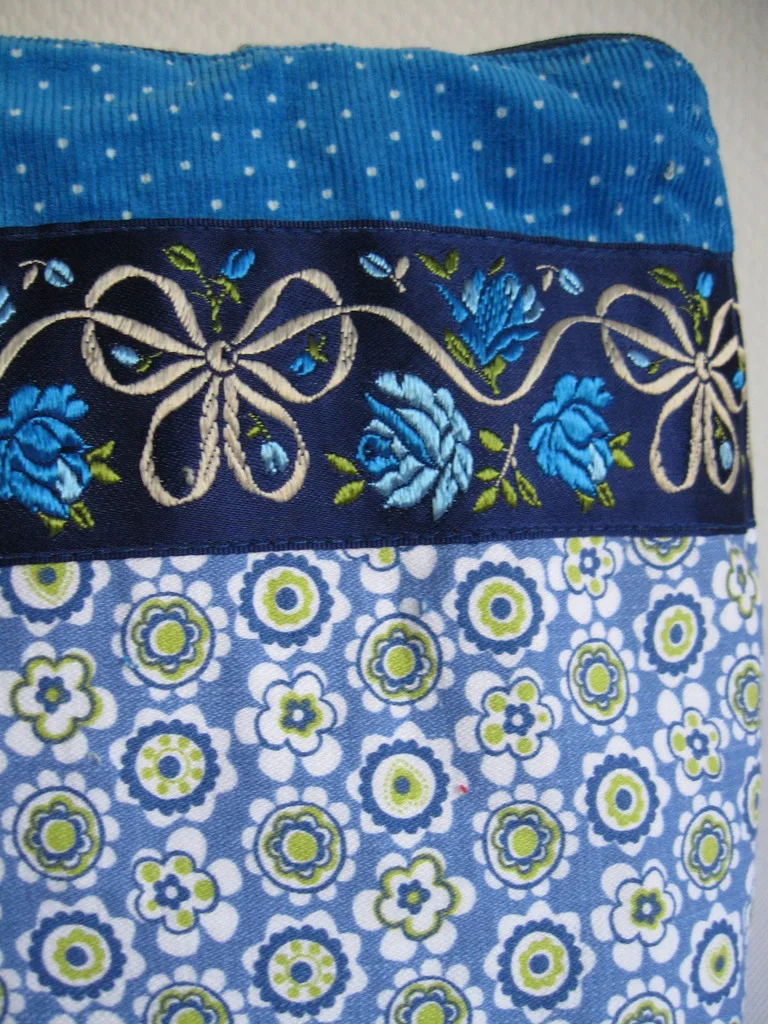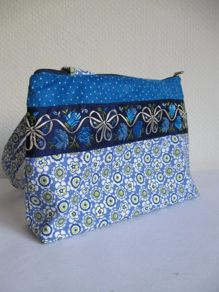 Die Tasche ist aus feinen Baumwollstoffen und wird mit einem Reißverschluss verschlossen.