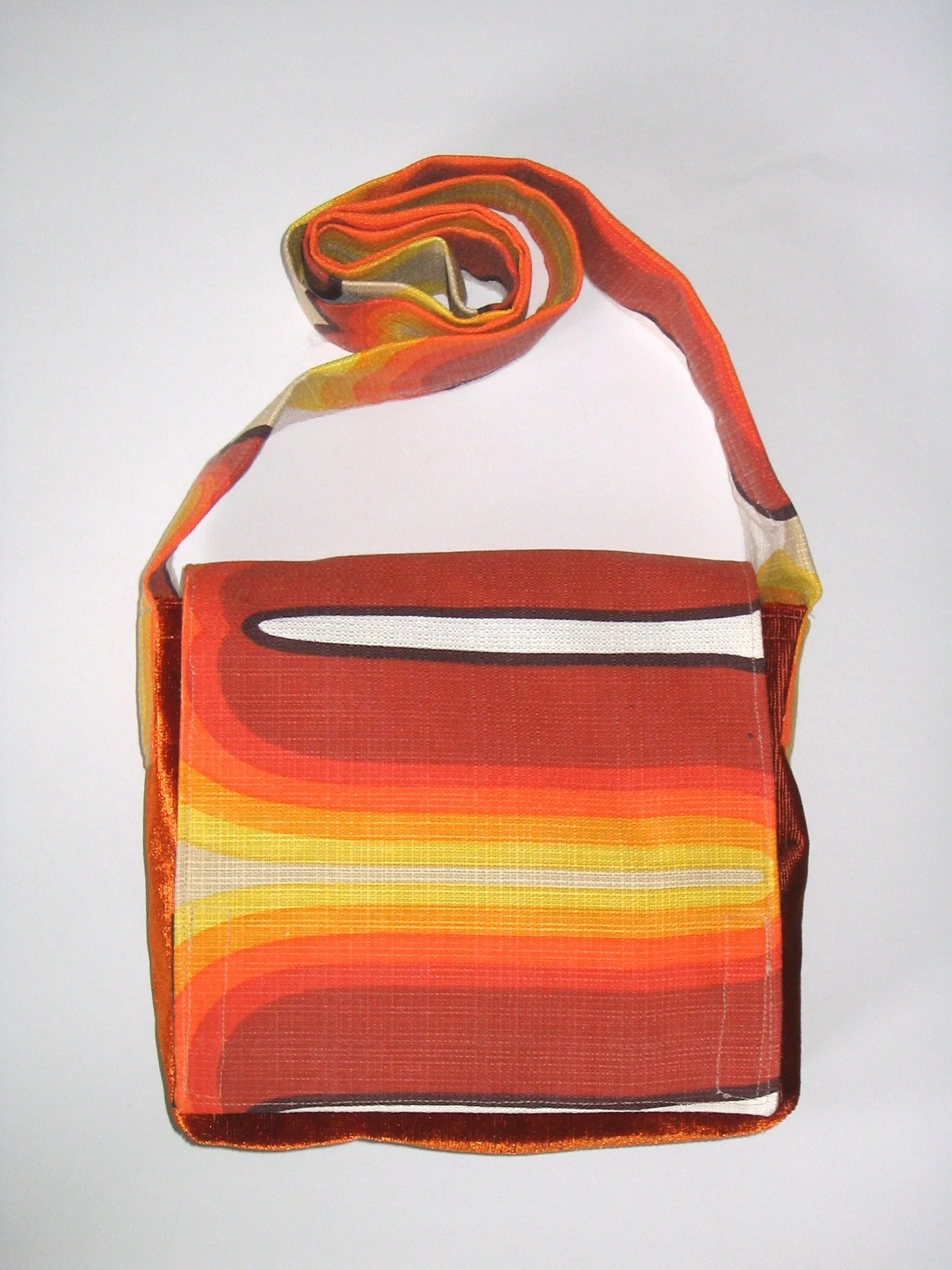 Diese Tasche mit original 70er Jahre Ornamenten ist ein handgenähtes Unikat der Designerin SiSie. Der Originalstoff ist in dieser Farbgebung besonders geschmackvoll.
