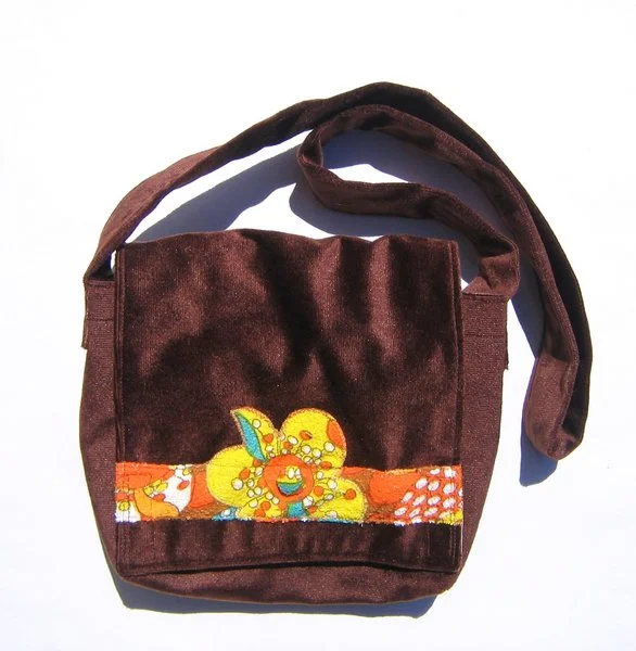 Braune Samttasche mit 70er Jahre Frotteestoff