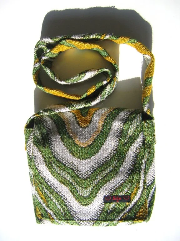 Unter der Taschenklappe ist zusätzlich eine kleine Extratasche (siehe Foto). Für die Festigkeit ist sie mit einer Einlage verstäkt und farbig mit einem passenden Futterstoff ausgestattet. Der Tragegurt ist lang genug, sodass die Tasche auch seitlich über die Schulter getragen werden kann.