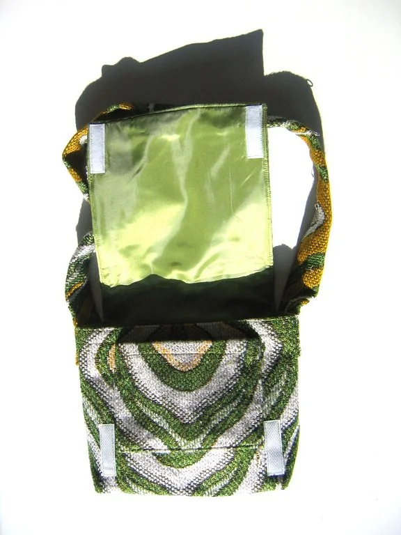 Diese Tasche mit original 70er Jahre Stoff ist ein handgehähtes Unikat der Designerin SiSie. Der Originalstoff ist für die ganze Tasche verwendet worden.